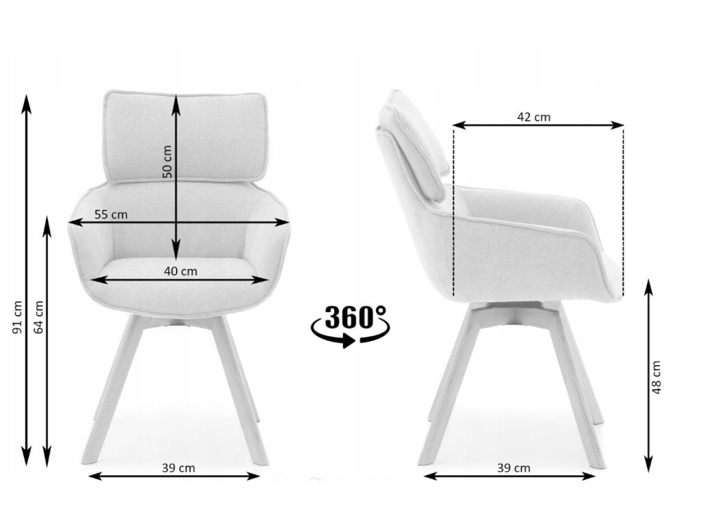 Židle Dorian nabízí otočnou funkci s otáčením o 360°, díky které se můžete pohodlně otočit ke stolu i od stolu bez nutnosti židli odsouvat – ideální do běžných i menších prostor. Vysoký opěrák s integrovaným měkkým polštářem podpírá záda v oblasti lopatek a zvyšuje komfort při delším sezení. Područky poskytují příjemnou oporu rukou. Výška sedu 48 cm poskytuje nadstandardně pohodlné a pevné sezení.