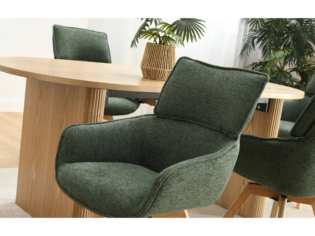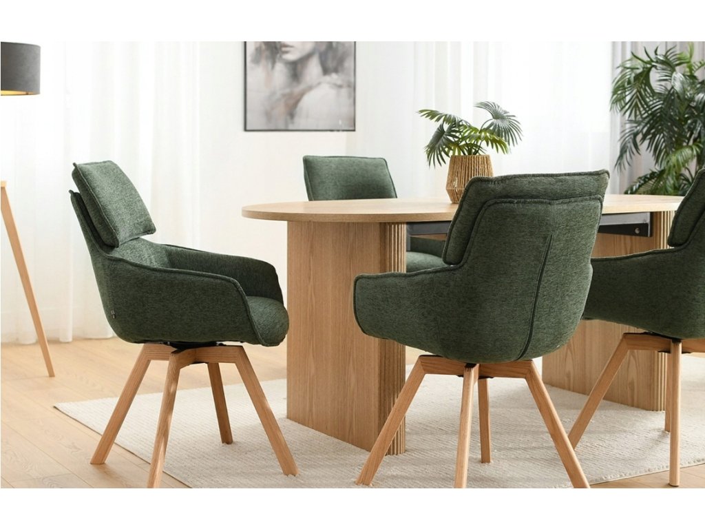 Otočná jídelní židle Dorian, zelený odstín/dubové podnoží