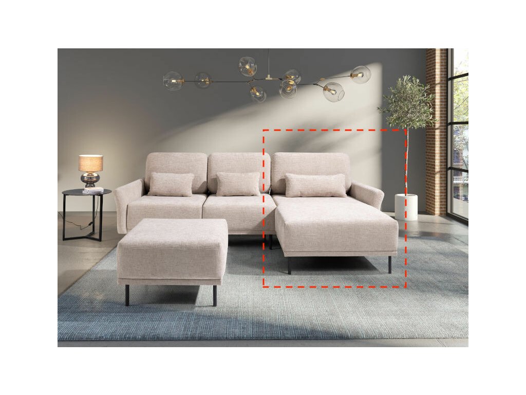 Otoman s područkou na pravé straně je určený k zakončení sedací soupravy ve tvaru L či U. Z čelního pohledu na sedací soupravu patří otoman na pravou stranu.
