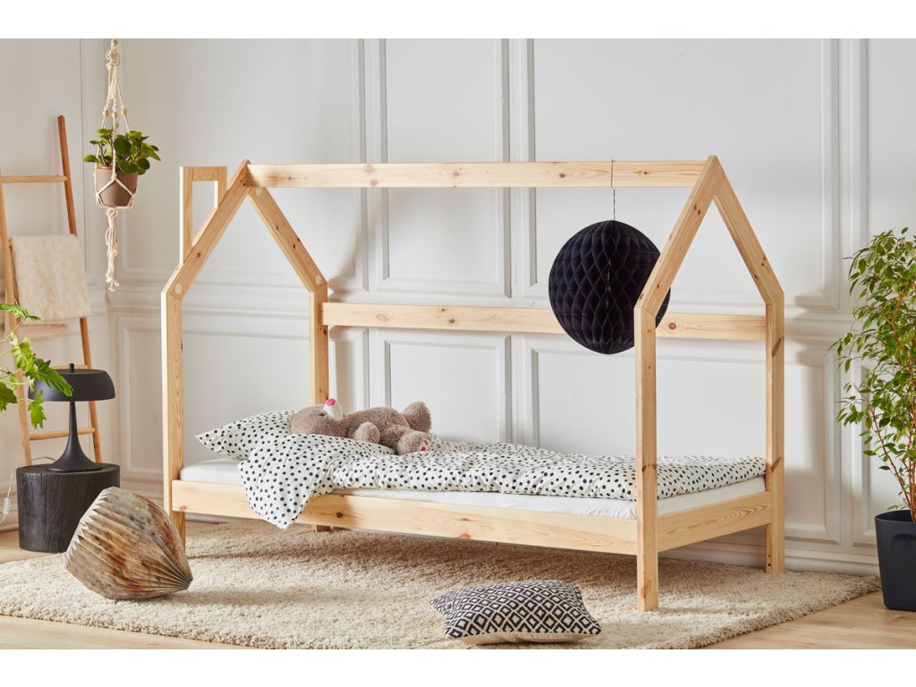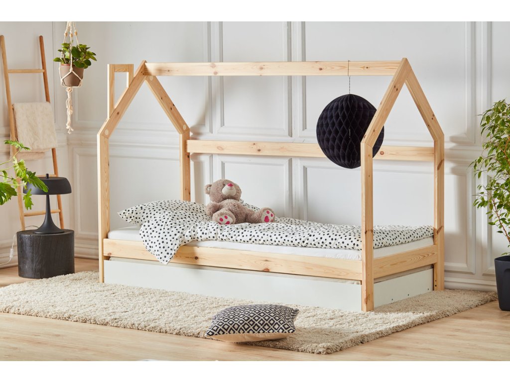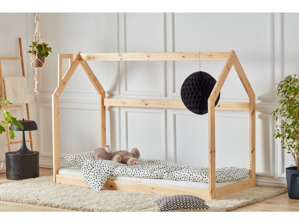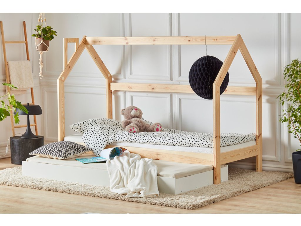 Postel Pinio Domeček je vyrobena z pečlivě vybraného borovicového masivu, který zajišťuje vysokou pevnost, stabilitu a dlouhou životnost. Dřevo je podélně lepené, což minimalizuje kroucení a zvyšuje celkovou nosnost konstrukce.