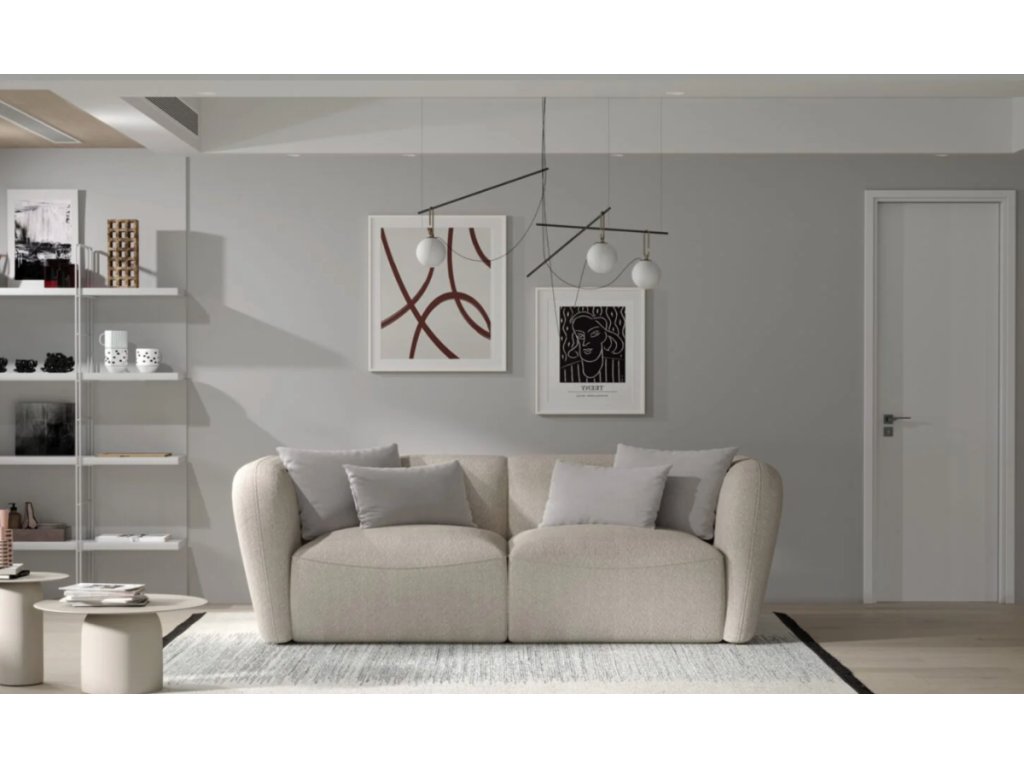 Měkké čalounění v kombinaci s příjemnými liniemi dodává interiéru harmonický a vzdušný vzhled.