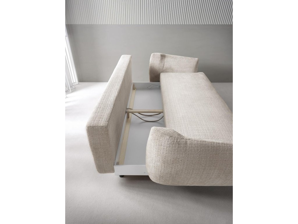 Pod sedací částí se nachází praktický úložný prostor vhodný na deky, polštáře či lůžkoviny. Toto řešení ocení každý, kdo chce mít doma více místa a zároveň pohovku využívat naplno.