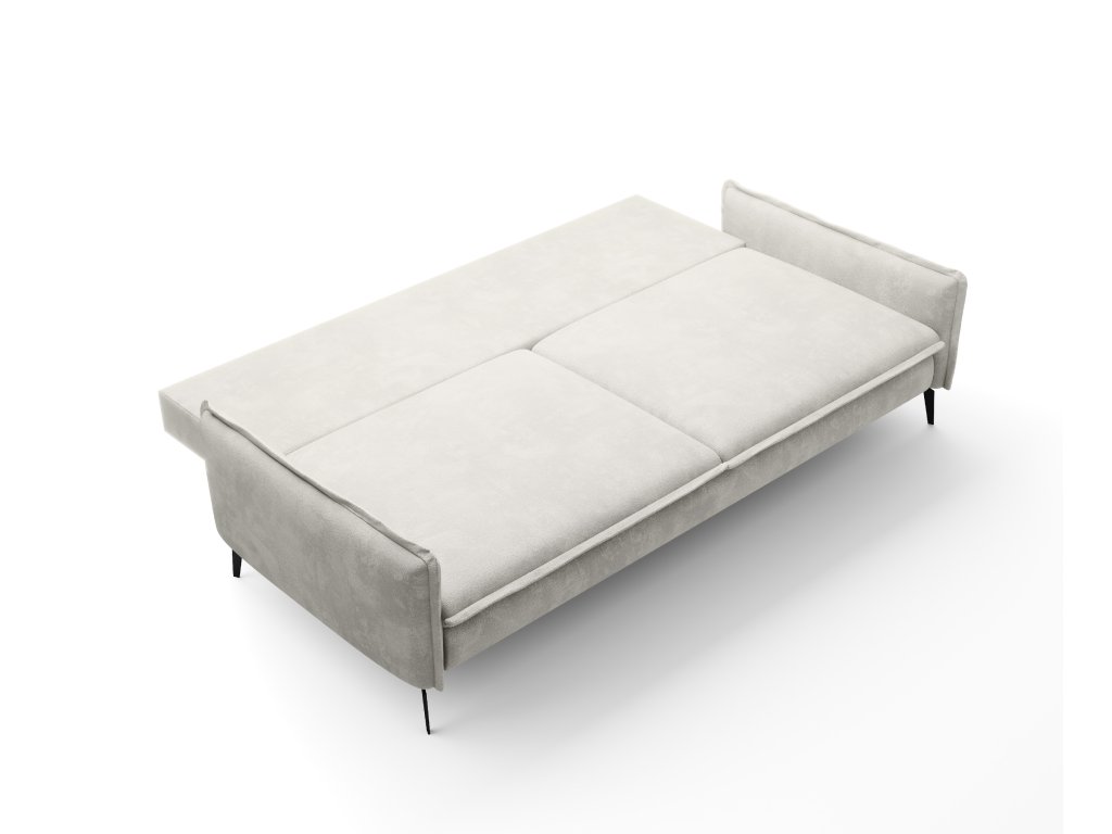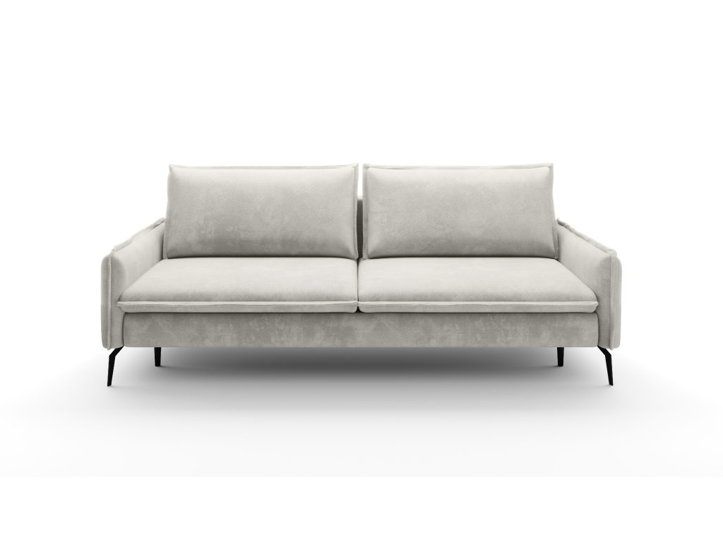 Čisté linie, ozdobný lem po horní hraně sedáku i polštářů a štíhlé kovové nožky vytvářejí elegantní a harmonický celek.