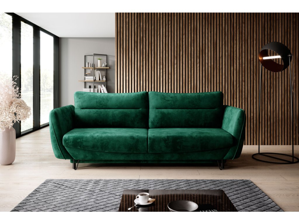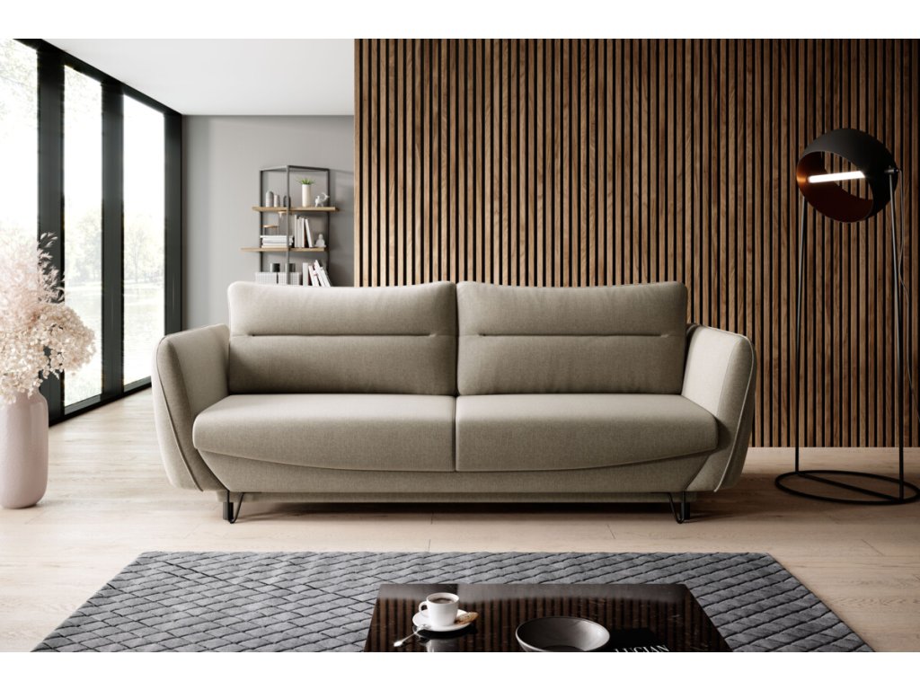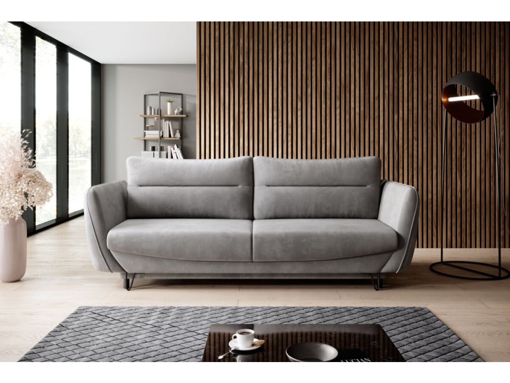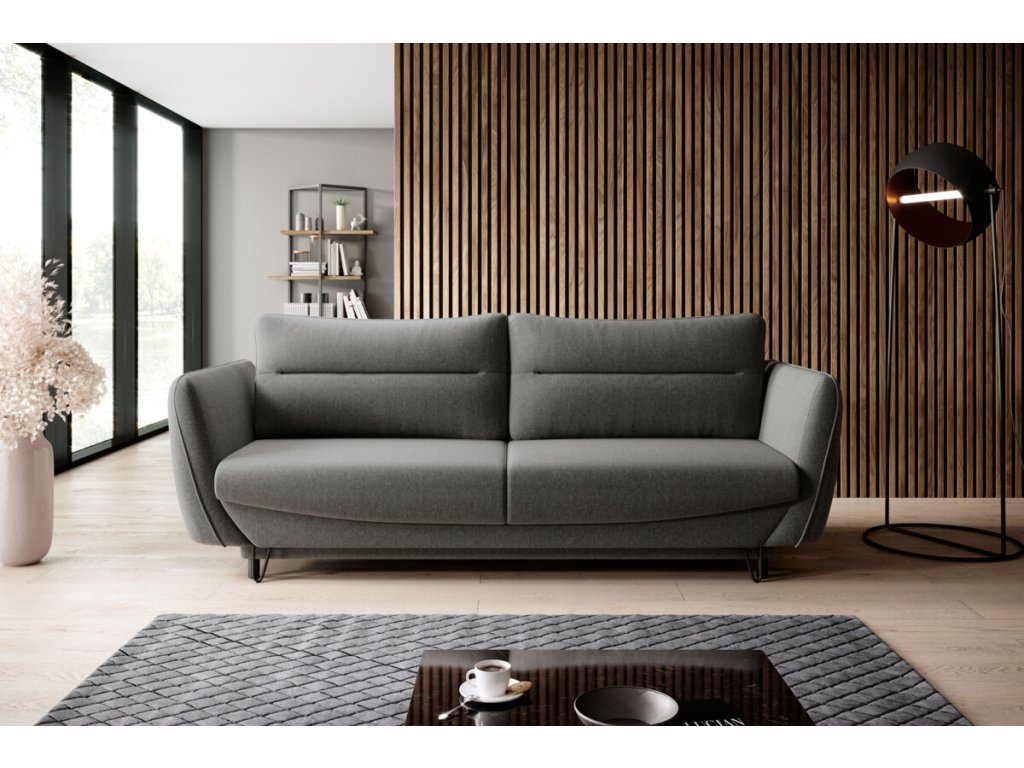 Není to jen originální vzhled, ale i komfortní sezení díky kvalitní HR pěně a možnost rozložení na lůžko pro občasné přespání. Nechybí ani praktický úložný prostor na lůžkoviny.