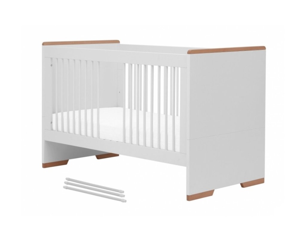 Doporučujeme postýlku doplnit dětskou matrací Sensitive 70x140 cm, po přestavbě postýlky na malou postel použijte bariérku Moon, která omezí pád dítěte z postele.