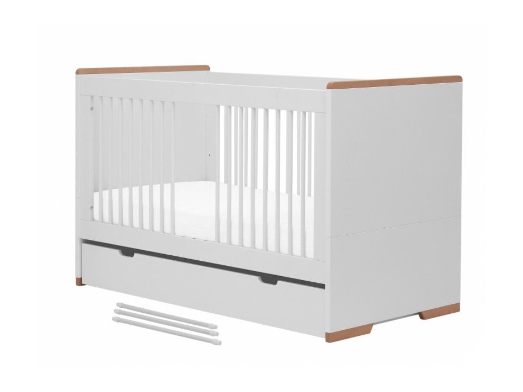 - jednoduchou demontáží bočnice změníte postýlku 140x70 cm na menší postel pro předškoláka, můžete také postýlku doplnit bariérkou Moon, která brání vypadnutí dítěte z postele