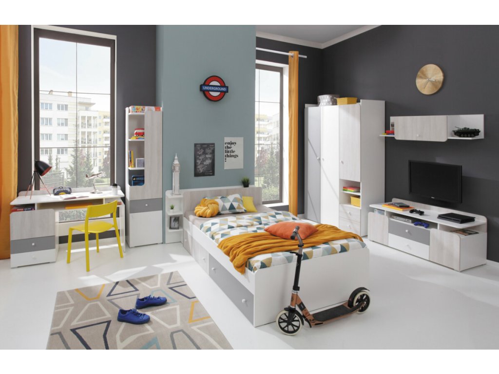 Praktická policová skříň se spoustou úložného prostoru, který lze využít na ukládání oblečení, hraček, knih a dalších věcí, jež budou v zásuvkách a uzavřených policích přehledně uspořádány. Moderní provedení v neutrálních barvách, které se hodí do dívčích i chlapeckých pokojů.