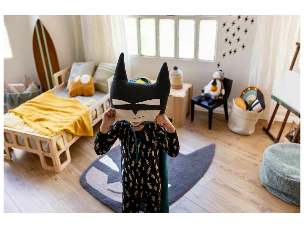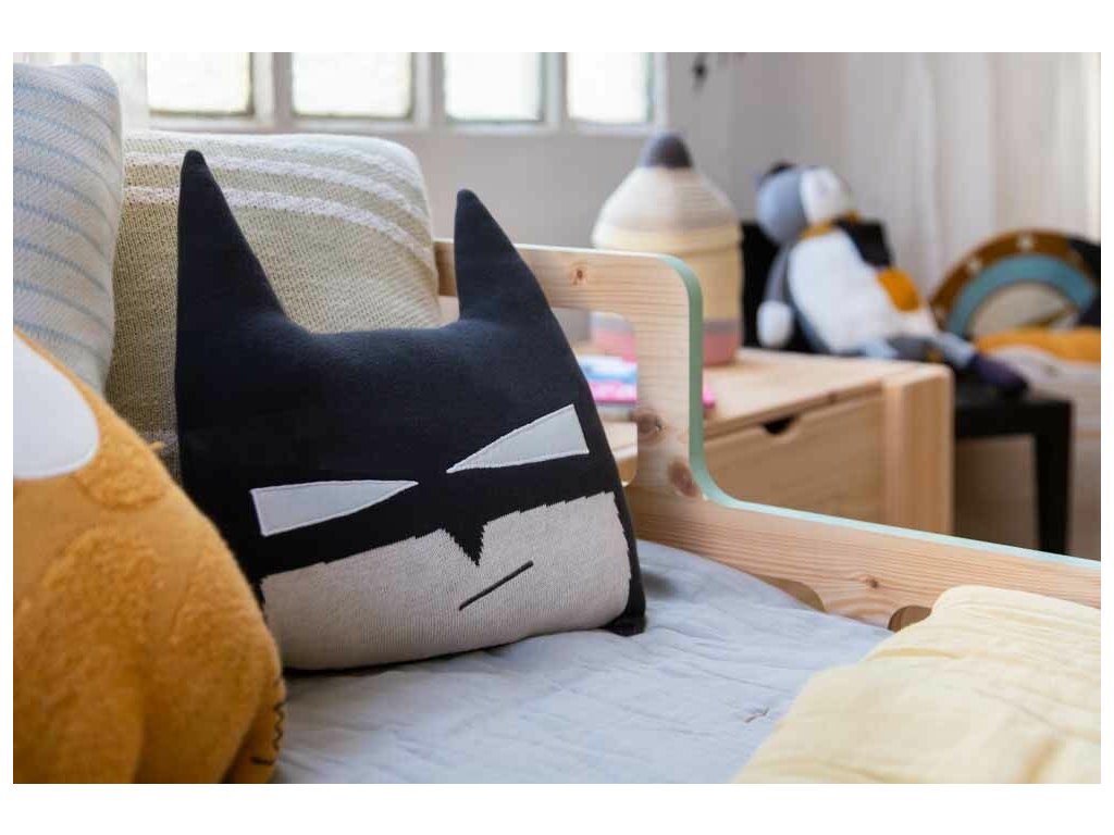 Pletený polštář BatBoy ve tvaru postavy Batmena, od světoznámé značky Lorena Canals, pro všechny malé děti, jež chtějí zažít pořádné dobrodružství. S polštářkem si mohou děti bezpečně hrát, nemá zip ani knoflíky, nebo na něm nerušeně odpočívat. Polštář je měkoučký, velmi pohodlný a můžete s ním obdarovat nastávající maminky. Samozřejmostí je možnost vyprat polštář v pračce celý, včetně výplně. Povlak není snímatelný. Kolekce je inspirovaná tvorbou známého umělce Edgara Planse. Postavy superhrdinů - duch Ghosty, myšák Astromouse, batmen Batboy a myška Miss Mighty Mouse, jež bojují o lepší svět, potěší všechny milovníky kreslených postaviček.