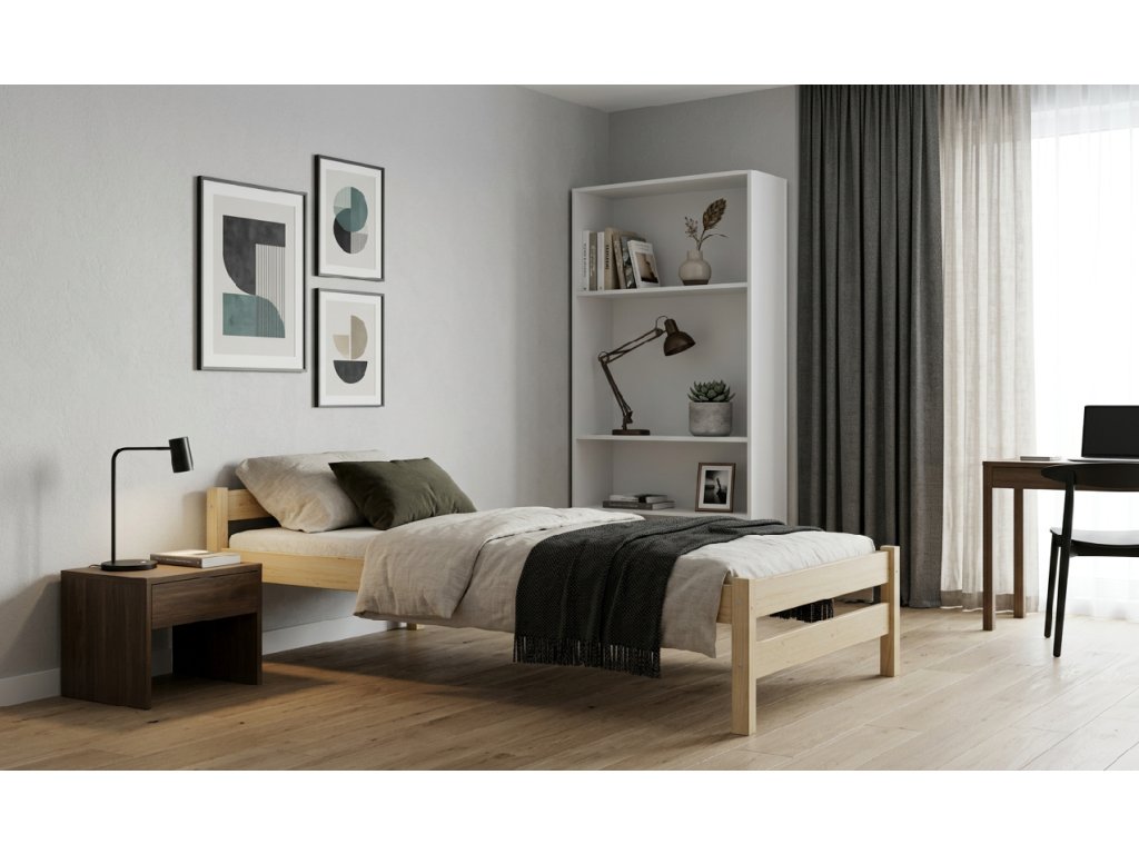 Postel Alex v rozměru 80 × 200 cm je vyrobena z čistého borovicového masivu, který vyniká pevností, lehkostí a krásnou kresbou. Povrch je ponechán v přírodním stavu, bez laku a chemických prostředků, což ocení zejména alergici a ti, kdo dávají přednost ekologickému bydlení.