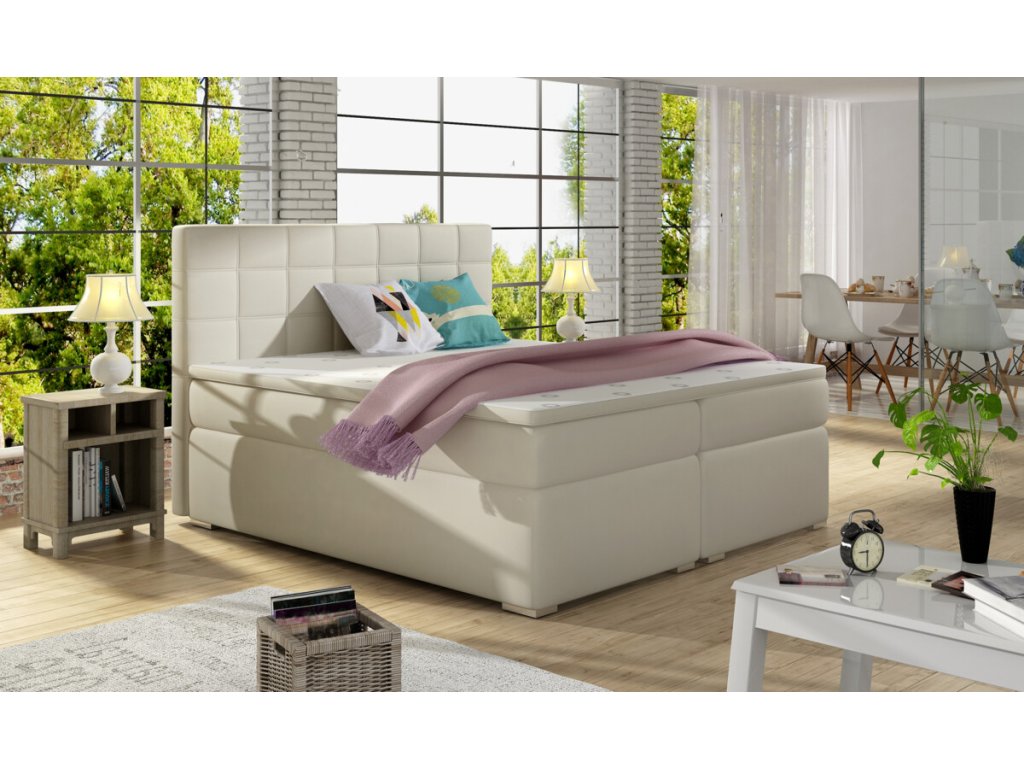 Pohodlná kontinentální postel se stylově prošívaným čelem je vhodná pro všechny náročné spáče. Komfort spánku a odpočinku zajistí pružinová matrace (20 cm) a topper (4 cm).