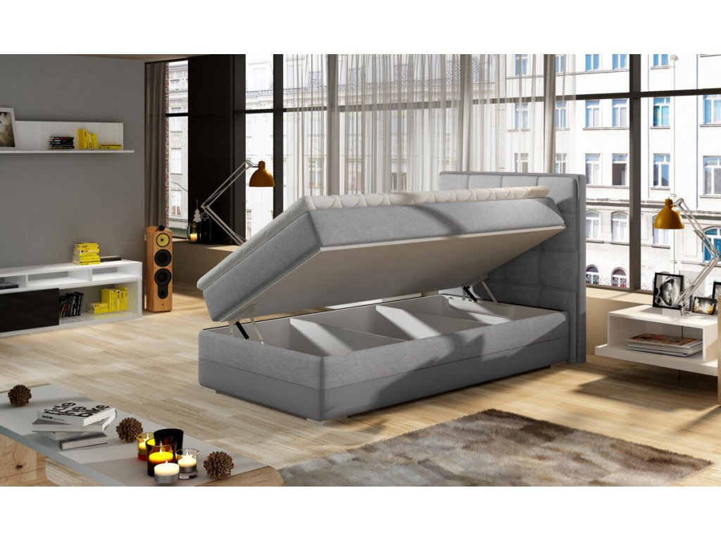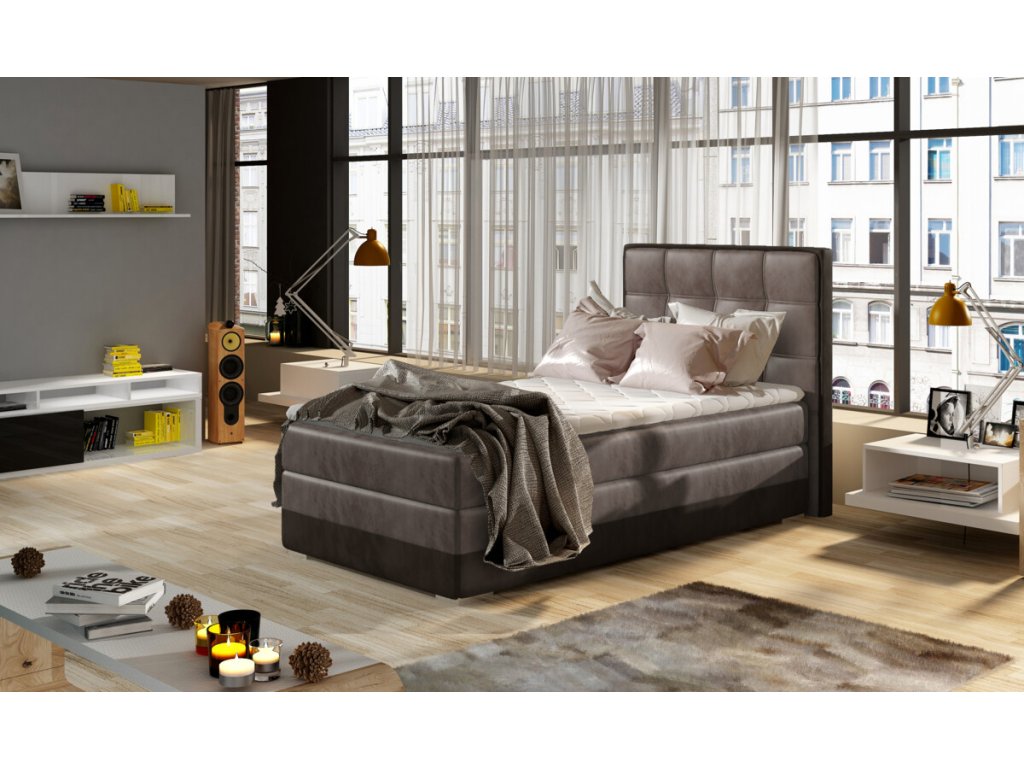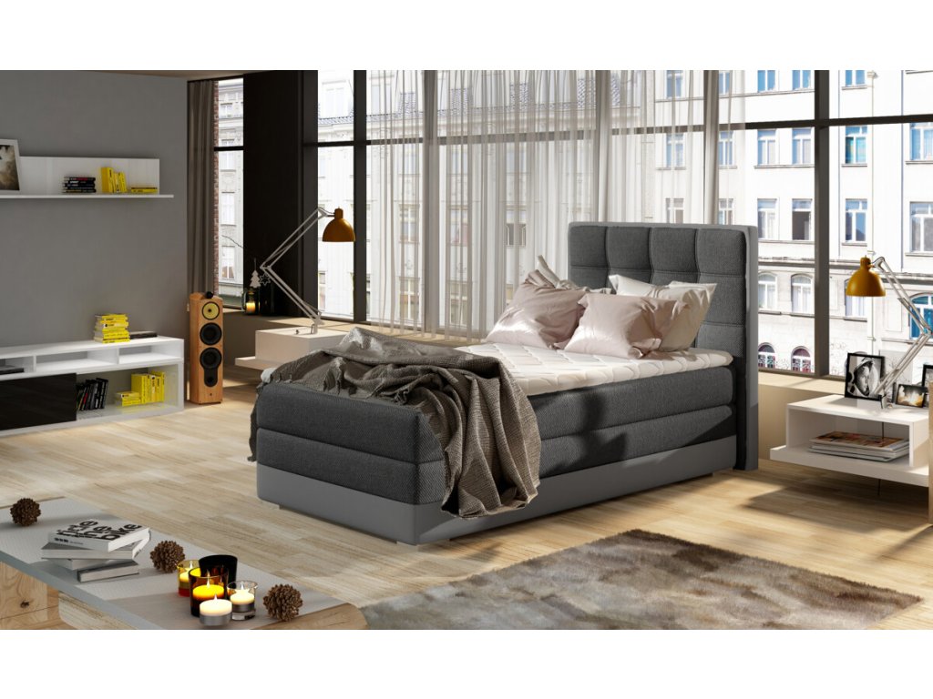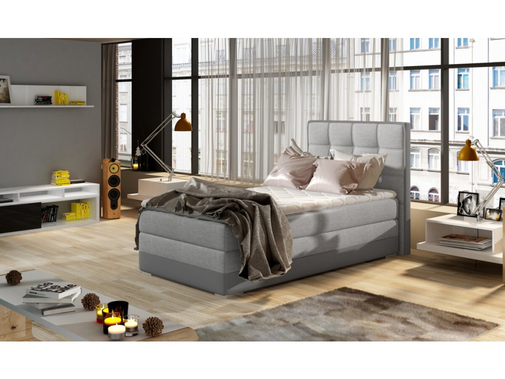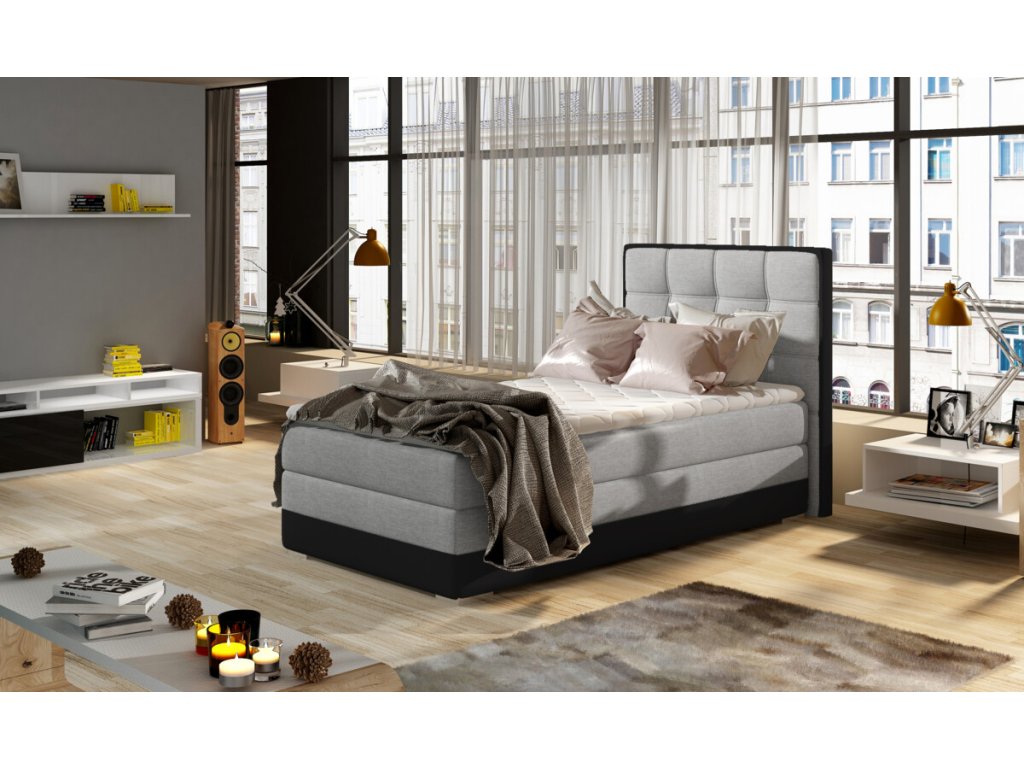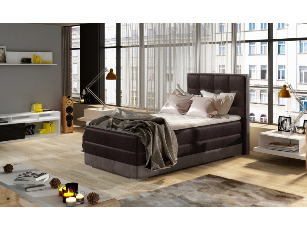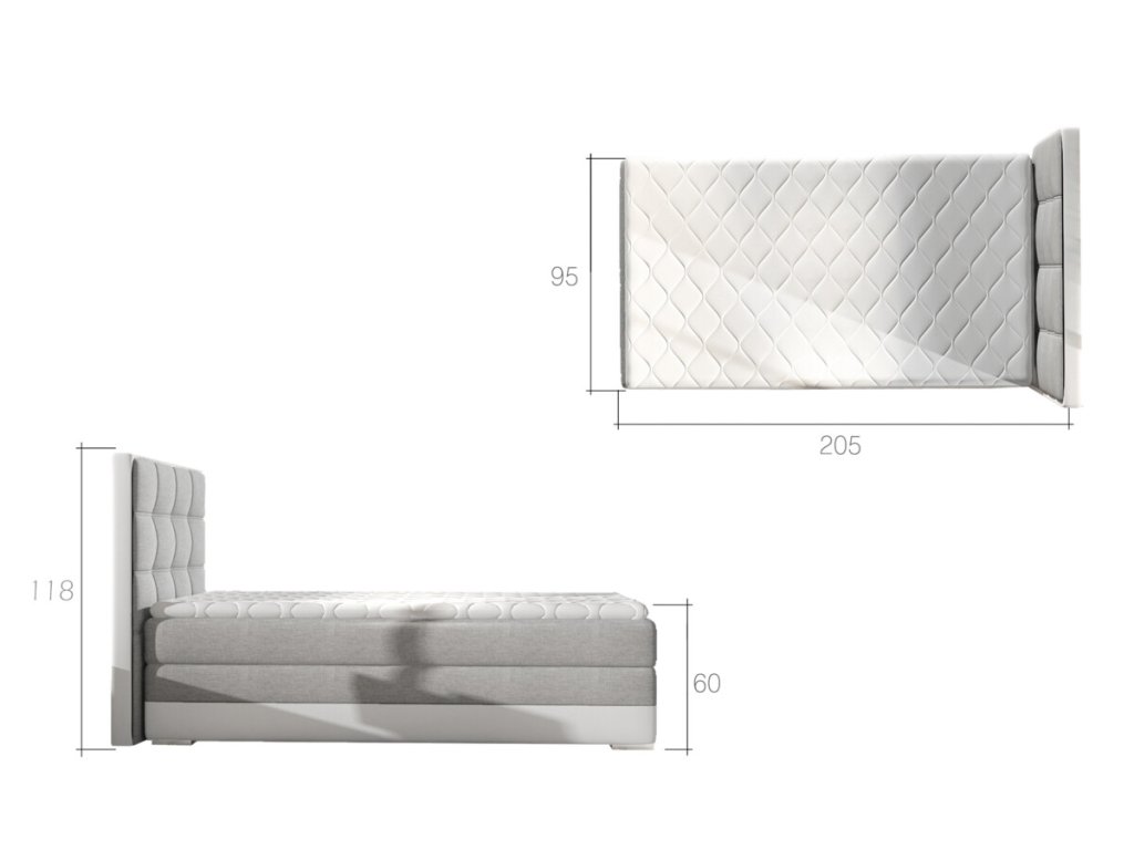 Pohodlná kontinentální postel se stylově prošívaným čelem je vhodná pro všechny náročné spáče. Komfort spánku a odpočinku zajistí pružinová matrace (20 cm) a topper (4 cm). Zvolit můžete jednu látku na celou postel nebo nakombinovat dvě různé.
