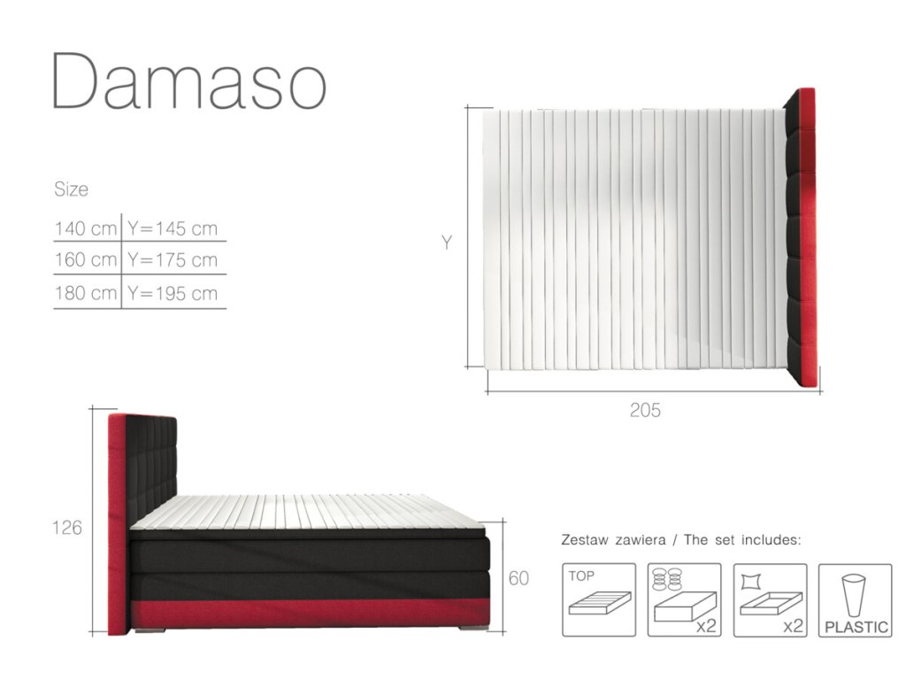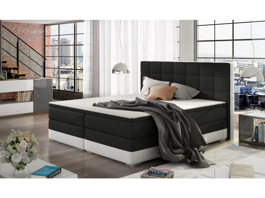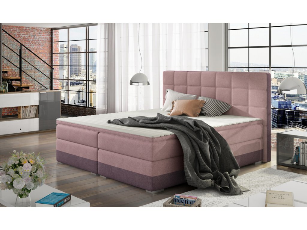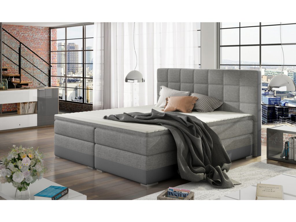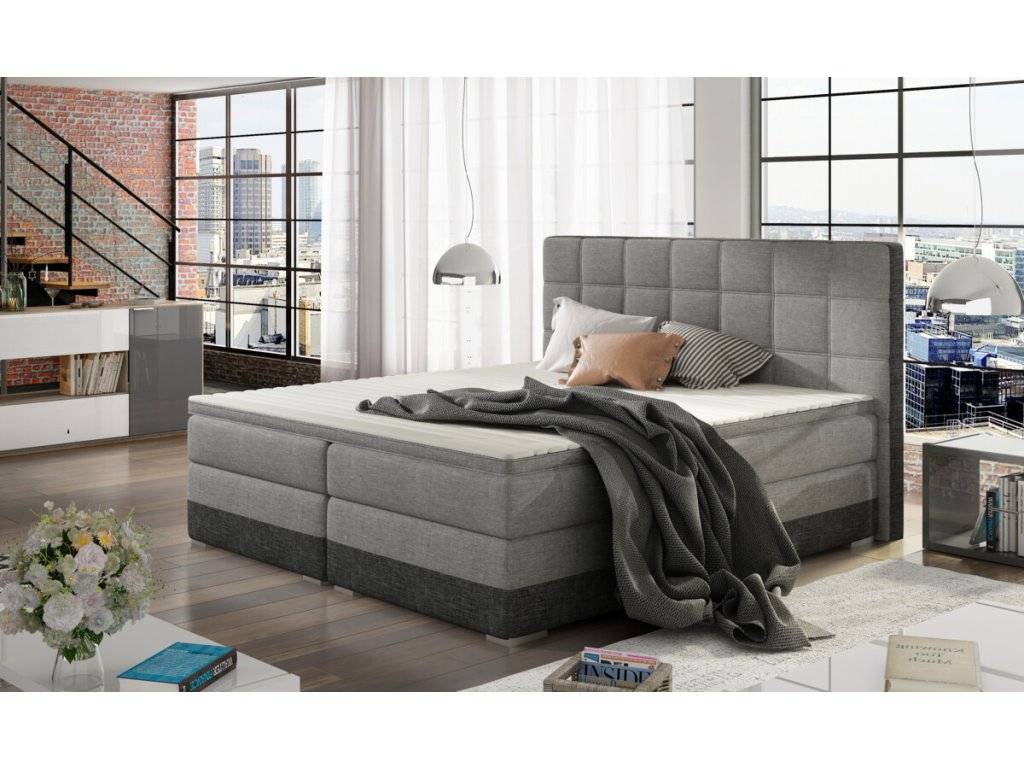 Pohodlná kontinentální postel se stylově prošívaným čelem je vhodná pro všechny náročné spáče. Komfort spánku a odpočinku zajistí pružinová matrace (20 cm) a topper (4 cm). Zvolit můžete jednu látku na celou postel nebo nakombinovat dvě různé.