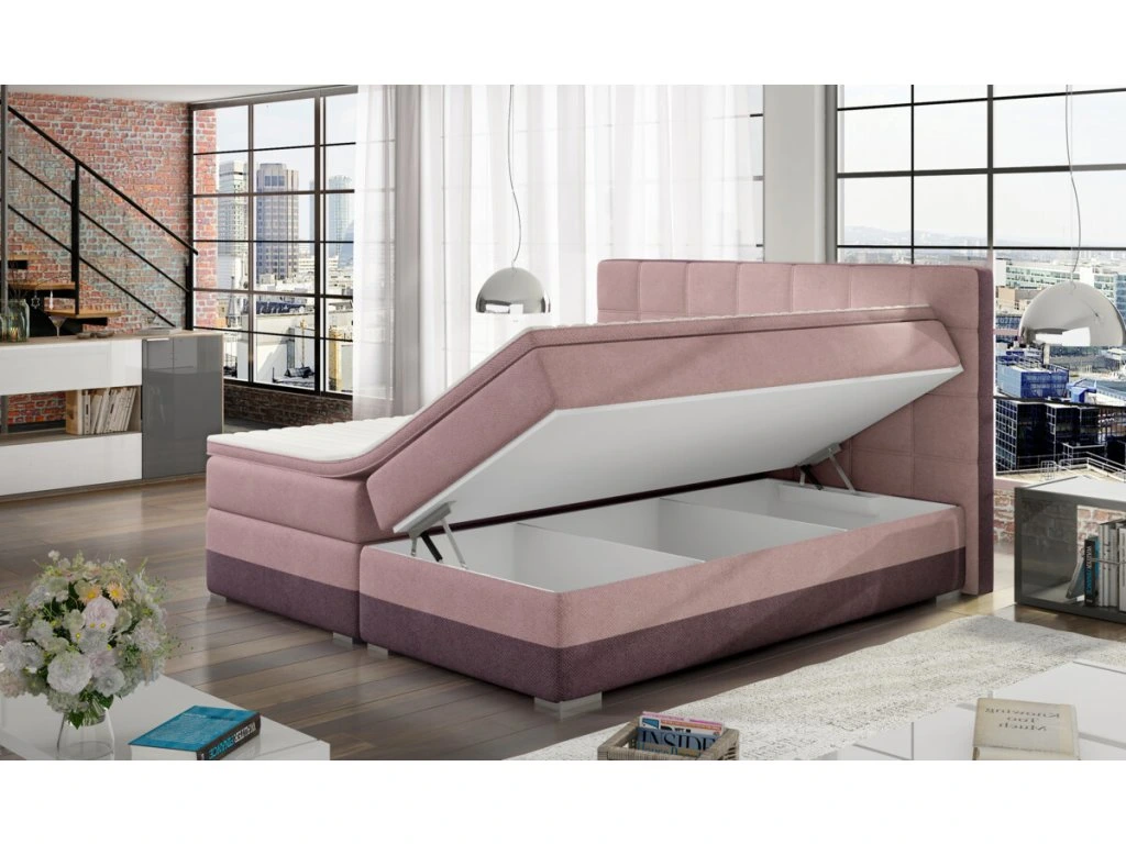 Pohodlná kontinentální postel se stylově prošívaným čelem je vhodná pro všechny náročné spáče. Komfort spánku a odpočinku zajistí pružinová matrace (20 cm) a topper (4 cm). Zvolit můžete jednu látku na celou postel nebo nakombinovat dvě různé.