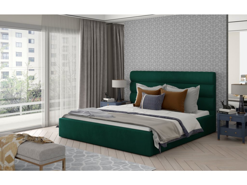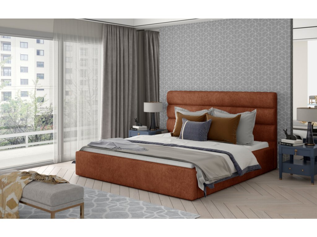 Dopřejte si ničím nerušený spánek na stylové posteli Caramel. Celočalouněné posteli dominuje vyšší čelo vodorovně prošívané, jež poslouží i jako opěrka hlavy pro ty, kdo si v posteli před spaním rádi přečtou pár řádků. Součástí postele jsou dřevěné lamelové rošty. Postel je na výběr z mnoha typů a odstínů látek, díky čemuž je snadné ji zakomponovat do různě laděných interiérů.