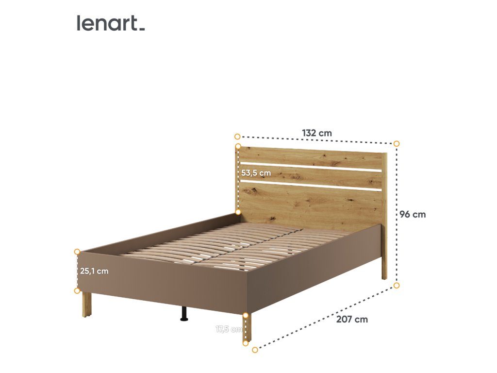 Dětská postel Lenny je zhotovená v příjemné barevné kombinaci, která je nadčasová a navodí v místnosti útulnou atmosféru. Vyšší čelo zajistí pohodlné sezení při čtení či sledování oblíbeného filmu.