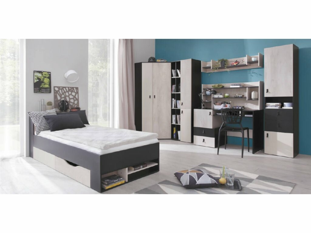 Stylová postel pro menší i starší děti, která bude ideálním místem pro odpočinek a ničím nerušený spánek. Součástí postele je praktická zásuvka, otevřené police, jež poskytnou tolik potřebný úložný prostor. V čele postele je zabudovaný výsuvný panel s policemi, který lze při montáži sestavit na pravou či levou variantu. Moderní provedení v neutrálních barvách, které se hodí do dívčích i chlapeckých pokojů.