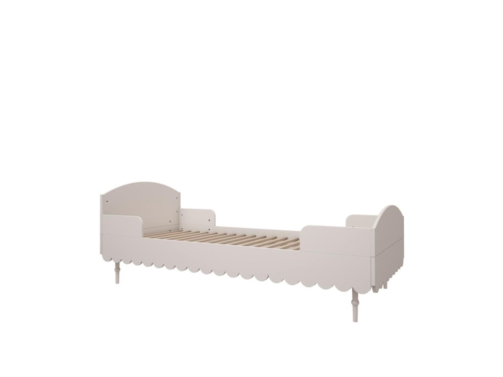 Posteli dominuje vyšší čelo, stylové nohy a zakončení připomínající krajku. Nevšední kousek nejen do dětských pokojů.