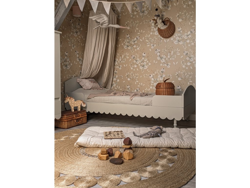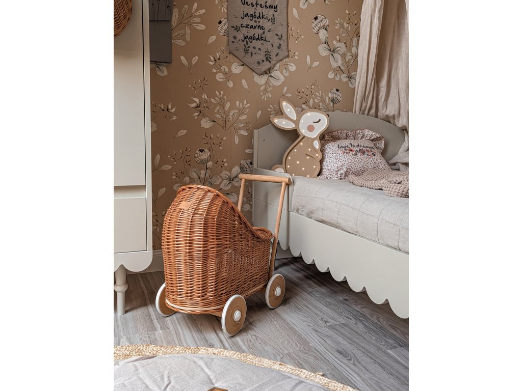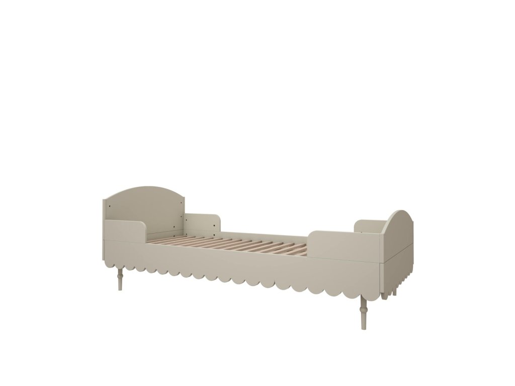 Nábytek je proveden v jemném odstínu, jenž snadno sladíte s různými dekoracemi i hračkami. Výraznými prvky kolekce jsou vyšší nožičky s dekorací, obloukové zakončení připomínající krajku, lehce přesahující vrchní desky a další jedinečné detaily.