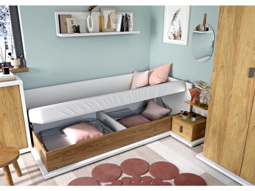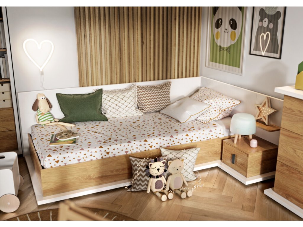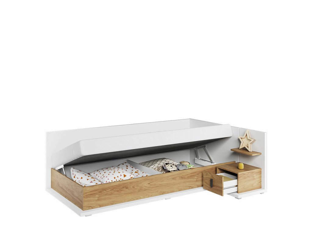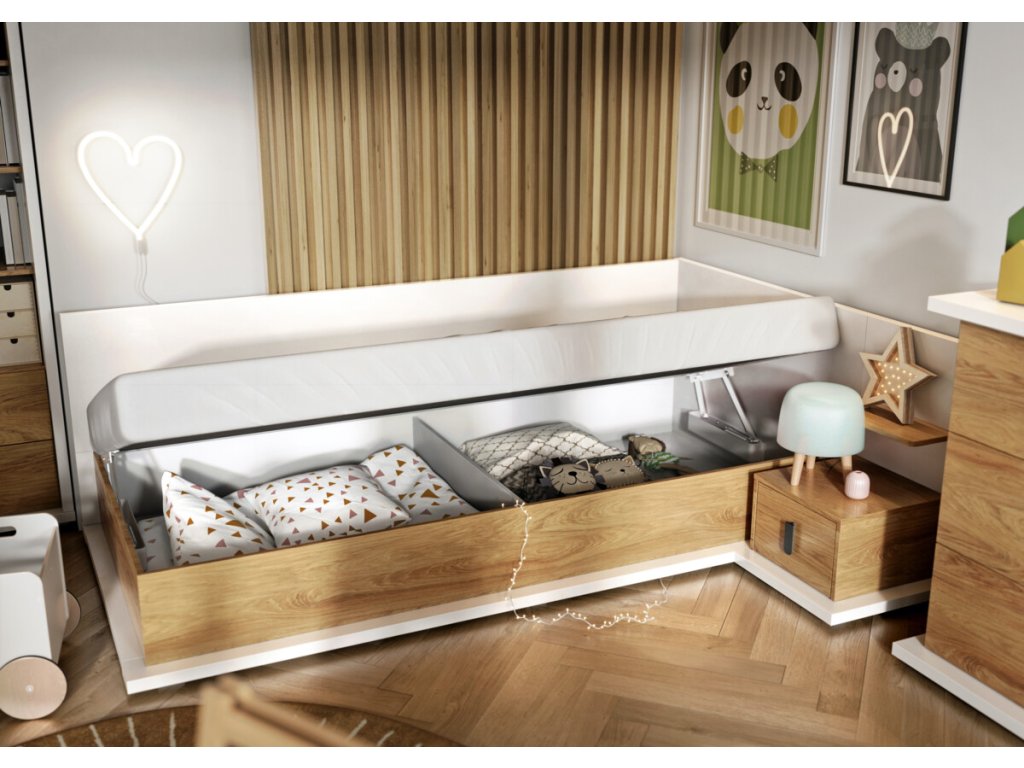 Stylová postel pro menší i starší děti, která bude ideálním místem pro odpočinek a ničím nerušený spánek. Pod matrací je praktický úložný prostor se snadným přístupem, do něhož lehce uskladníte lůžkoviny, hračky a další věci. Postel je v pravé verzi, levou lze zakoupit zde. Součástí postele je pružinová matrace 90 x 200 x 18 cm se zabudovaným roštem. Neutrální barevný odstín nábytku pro holky i kluky.