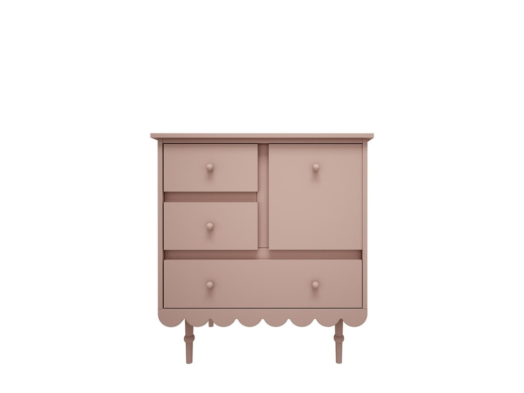 Elegantní komoda Babushka je rozdělená na tři zásuvky a dvířka. Komoda je skvělým pomocníkem při organizaci oblečení, hraček a dalších věcí, ať už v pokoji pro miminka, starší děti, studenty i dospělé.
