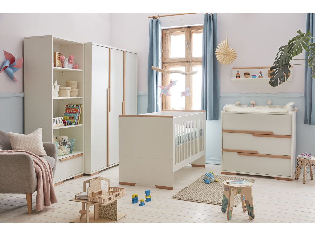 Kombinace bílé barvy a přírodního buku působí elegantně a snadno se kombinuje s dalšími prvky kolekce Snap. Komodu lze sladit s postýlkou, skříní i dalším nábytkem ve stejném designu.