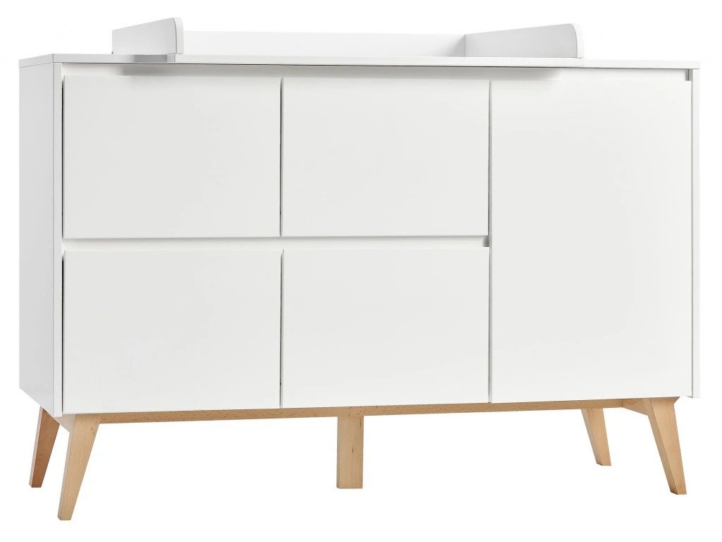Komoda Pinio Swing kombinuje elegantní vzhled se skandinávským stylem a funkčností, která usnadňuje každodenní péči o dítě. Nabízí čtyři prostorné zásuvky a jednu skříňku s dvířky, za nimiž se nachází praktická police. Díky promyšlenému rozložení poskytuje dostatek prostoru pro oblečení, doplňky i dětské potřeby.