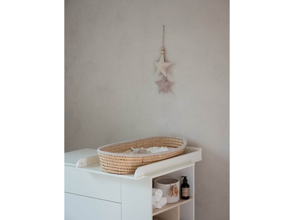 Nábytek je proveden v jemném odstínu s prvky dřeva, jenž snadno sladíte s různými dekoracemi i hračkami. Hladký povrch bez rušivých úchytů poskytuje elegantní vzhled, zatímco otevírání je zajištěno systémem push-to-open – stačí lehce zatlačit, a dvířka nebo zásuvky se samy otevřou.