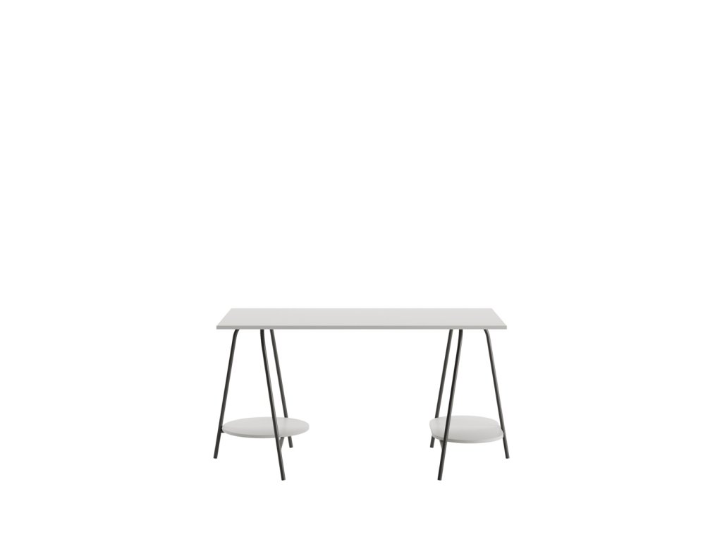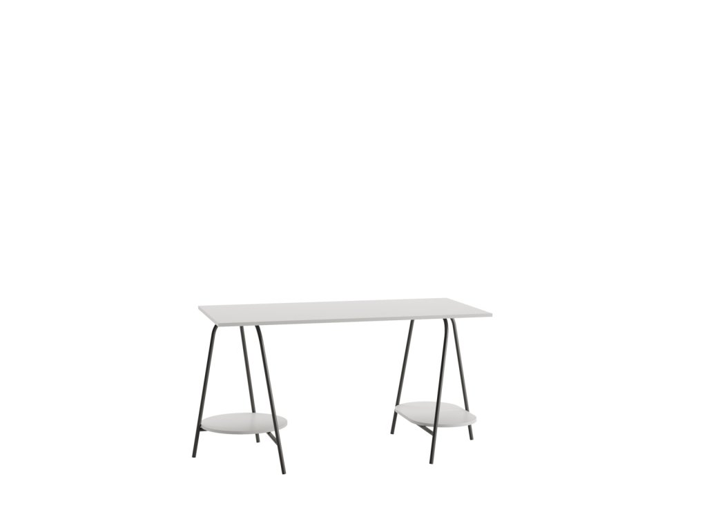Pracovní stůl zaujme na první pohled svým nevšedním provedením. Desku podpírají kovové nohy, které zároveň drží polici k odkládání drobností. Tento nápaditý vzhled zaujme na první pohled a působí velmi moderně.
