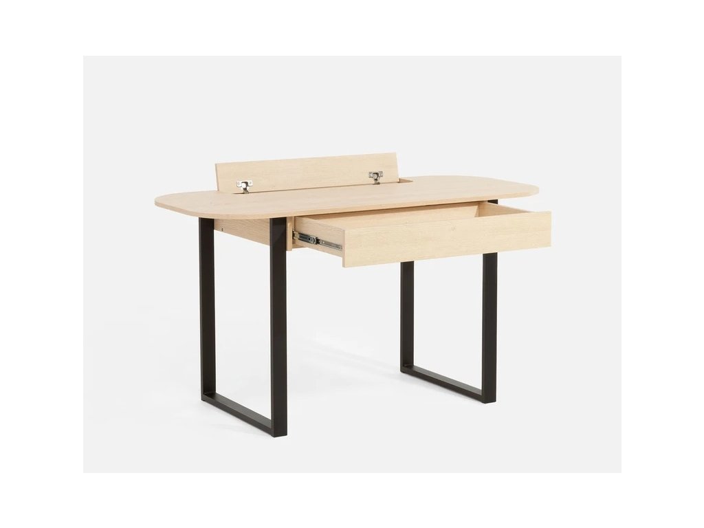 Stůl je vybaven výklopnou zadní přihrádkou, která umožňuje ukrýt prodlužovací kabely, nabíječky, adaptéry i připojovací konektory. Tento chytrý detail udržuje pracovní plochu čistou, přehlednou a bez nevzhledných kabelů. Ideální řešení pro notebook, monitor i lampičku.