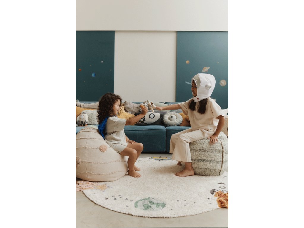 Pohodlný puf na sezení připomíná planetu Neptun, skvěle tak zapadá do celé kolekce na téma vesmír. Stylový doplněk, ze kterého se děti něco přiučí.