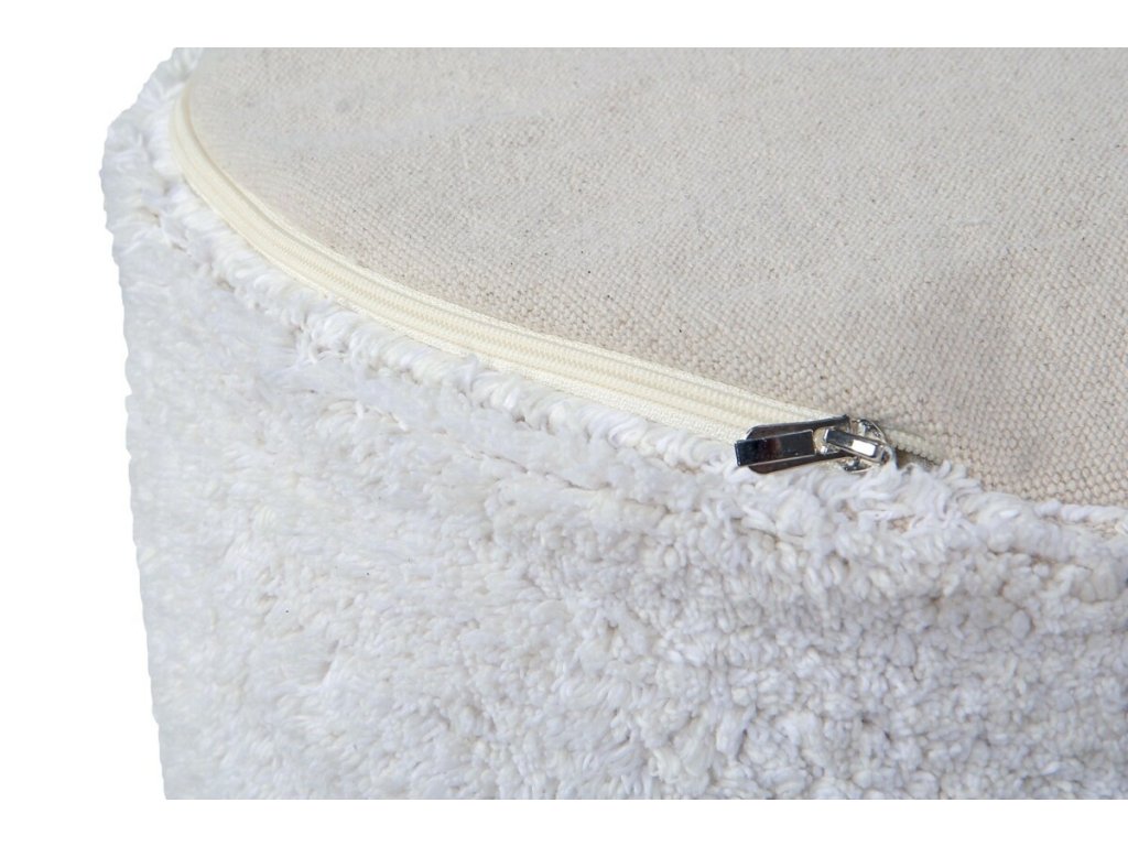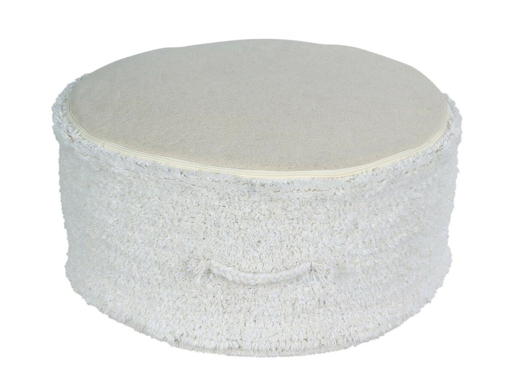 Sedací puf je oblíbeným doplňkem v pokoji pro děti, ložnici a obývacím pokoji. Puf je vyrobený z příjemného, měkkého materiálu, povlak se zipem lze sundat a vyprat v pračce, barva slonovinově bílá. Zajímavým a zároveň funkčním detailem jsou dva „copánky“, jež slouží jako ucha k posouvání či přenášení. Puf je vhodný pro děti i dospělé, pod nohy nebo k pohodlnému sezení.