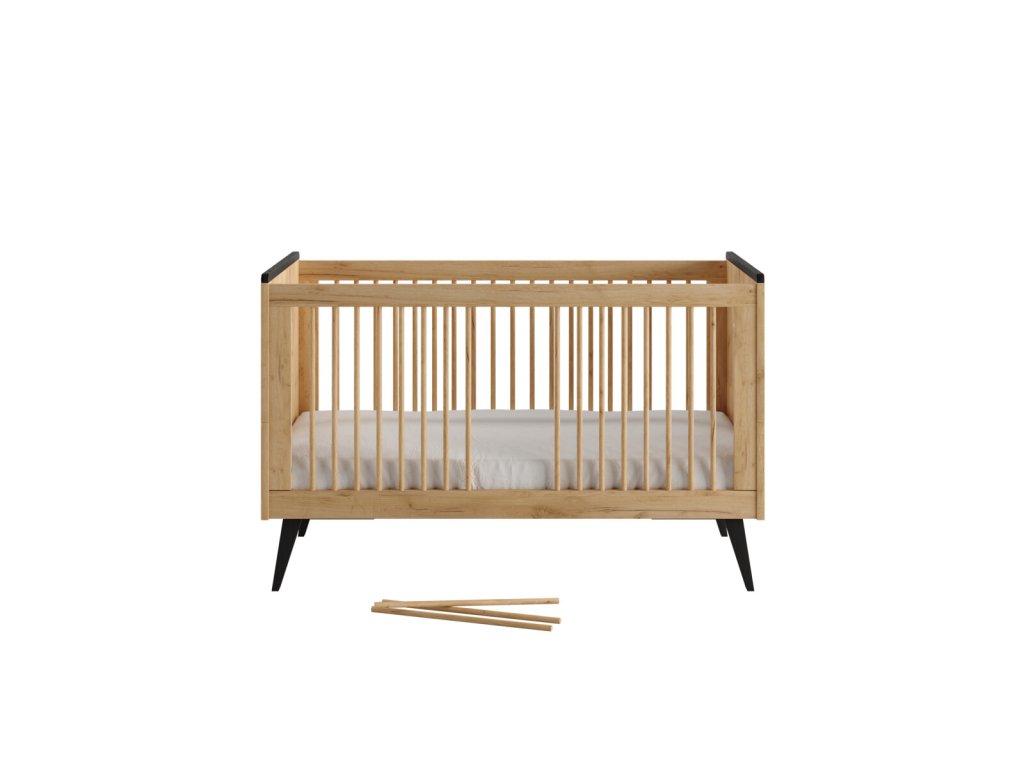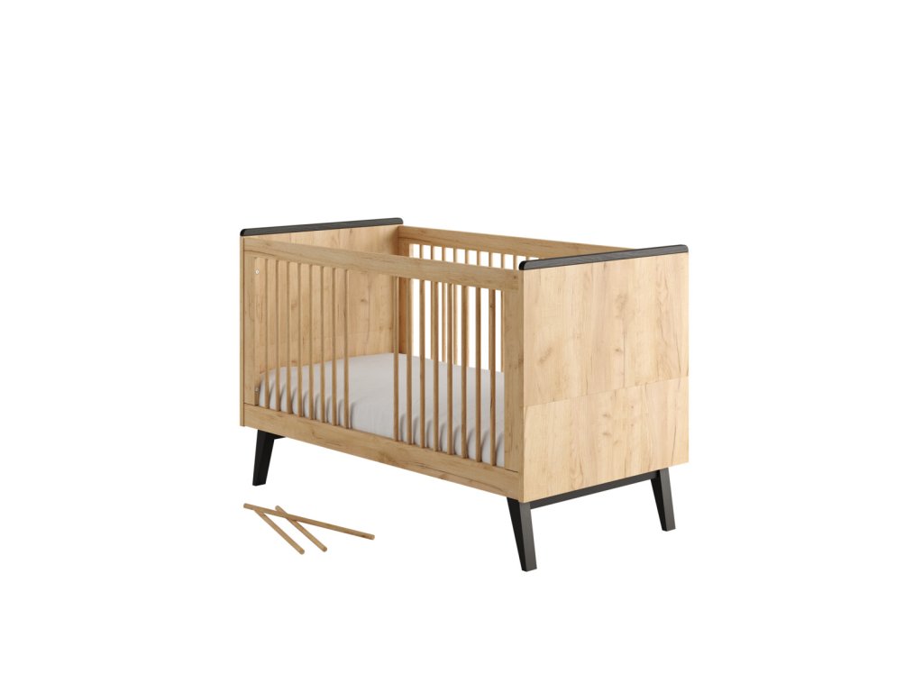 Elegantní postýlka Retro patří do kategorie rostoucího nábytku, kdy ji pomocí snadných úprav přizpůsobíte potřebě a věku miminka. Z boční části je možné vytáhnout tři příčky, a tím vznikne bezpečný průlez pro samostatné vylézání a zalézání do postýlky. Dalším krokem může být sundání bočnic, kdy vznikne postel pro menší děti.
