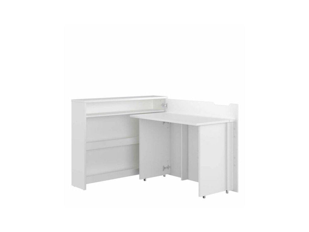 Rozkládací psací stůl je vhodný do menších kanceláří a pokojů. Jednoduché ovládání, moderní design a praktické řešení pro všechny, kteří chtějí ušetřit místo a zároveň nepřijít o elegantně zařízený interiér kanceláře, dětského pokoje či studovny. Po rozložení stůl disponuje policemi, jež slouží k odkládání knih, časopisů nebo kancelářských potřeb.
