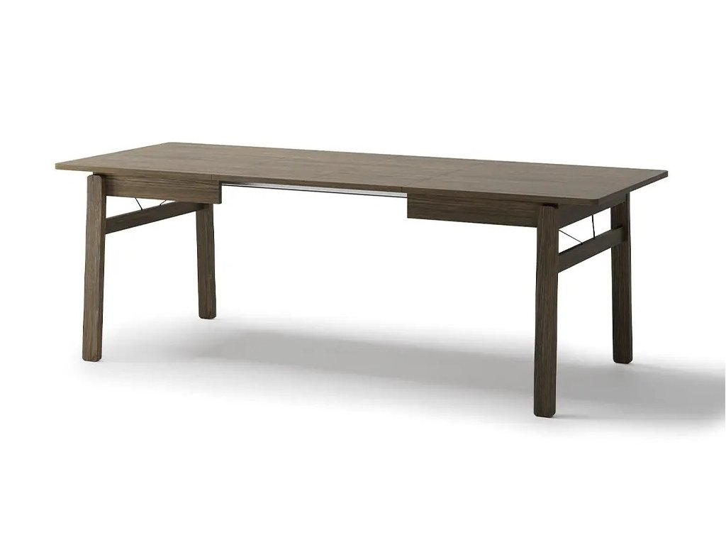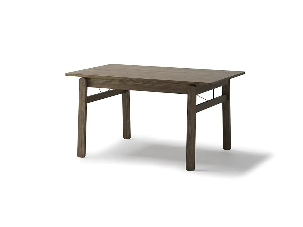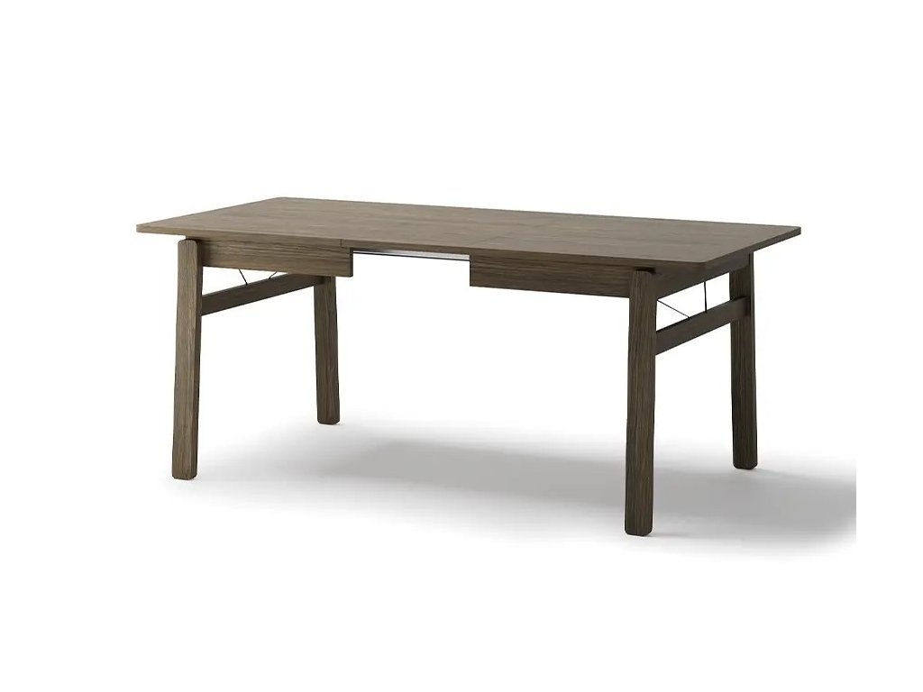 Deska stolu je vyrobena z laminované dřevotřísky o tloušťce 22 mm s ABS hranami (0,45 a 1 mm), které chrání povrch před poškozením. Konstrukce je zpevněna bočními výztuhami mezi nohami, které zajišťují vyšší pevnost a stabilitu i při plném rozložení stolu. Masivní dubové nohy v tmavém odstínu navíc umocňují stabilní dojem a podtrhují celkovou eleganci stolu.