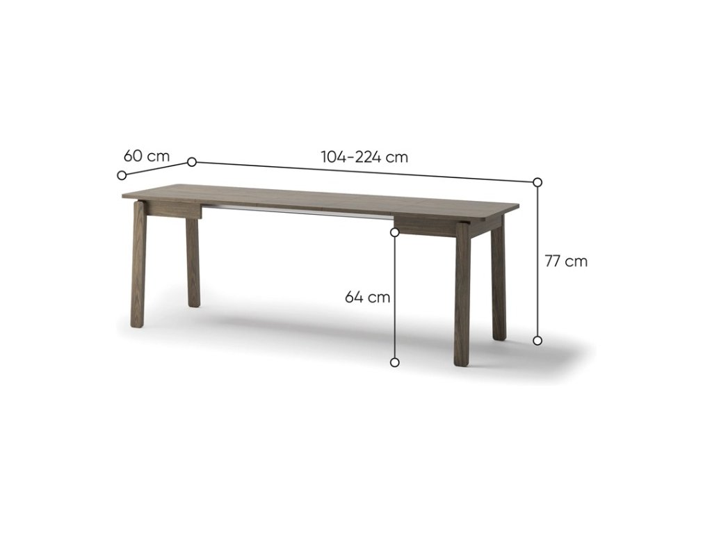 Rozkládací stůl Plot PT02 byl navržen s důrazem na každodenní pohodlí a jednoduché používání. Jeho rozklad ze 104 cm až na 224 cm umožňují tři vložené desky, které lze použít postupně podle potřeby. Synchronní mechanismus zajišťuje plynulý a lehce ovladatelný pohyb, takže rozložení zvládne každý bez námahy. Po rozložení nabízí stůl velkorysý prostor až pro šest osob a přitom zůstává pevný a stabilní.