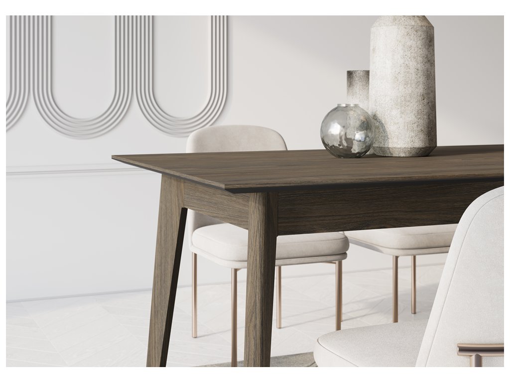 Dekor tmavého dubu vytváří v interiéru hřejivou a příjemnou atmosféru. Jeho výrazná kresba dřeva podtrhuje přirozený charakter nábytku a přidává mu na eleganci. Povrchová úprava je vysoce odolná proti oděru i poškrábání, takže stůl si udrží svůj krásný vzhled po mnoho let.