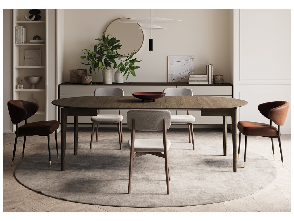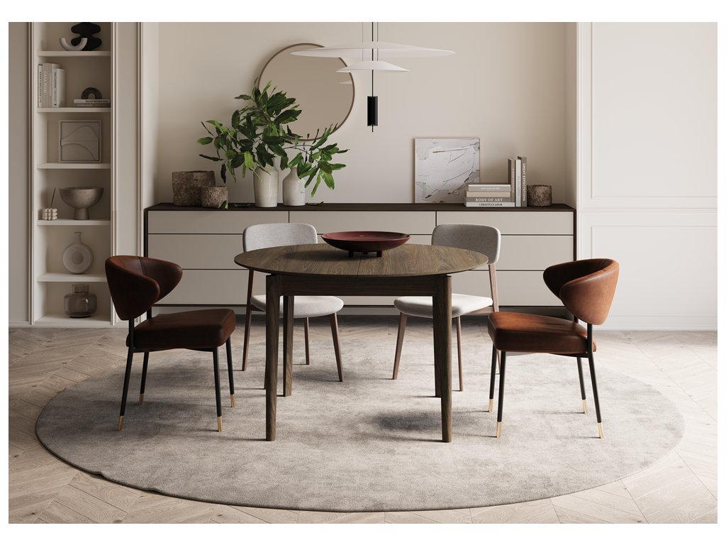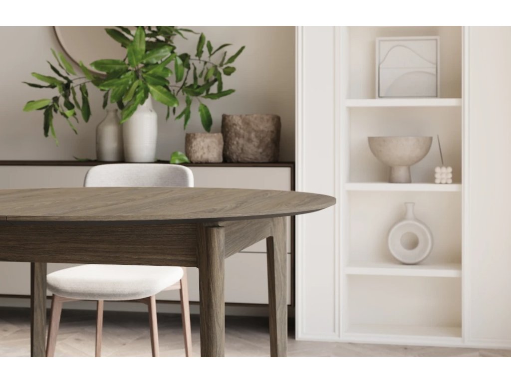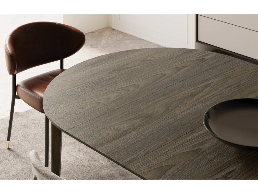 Kulatý rozkládací stůl Plot PT05 v tmavém dubu působí elegantně, moderně a zároveň hřejivě díky přírodnímu dekoru dřeva. Jeho promyšlená konstrukce s přídavnými deskami umožňuje variabilní rozšíření stolu podle aktuální potřeby. Díky plynulému, delikátnímu rozkládacímu mechanismu se desky snadno posouvají a rozložení probíhá lehce a bez námahy. Masivní dubové nohy dodávají konstrukci pevnost a zajišťují stabilitu i při plném rozložení.