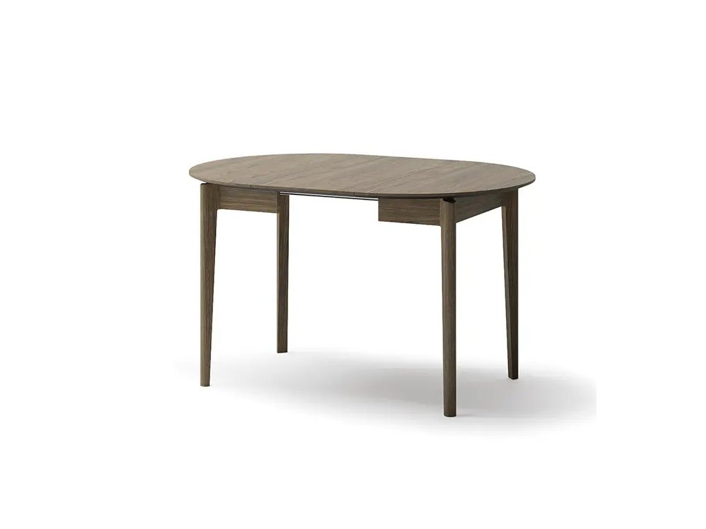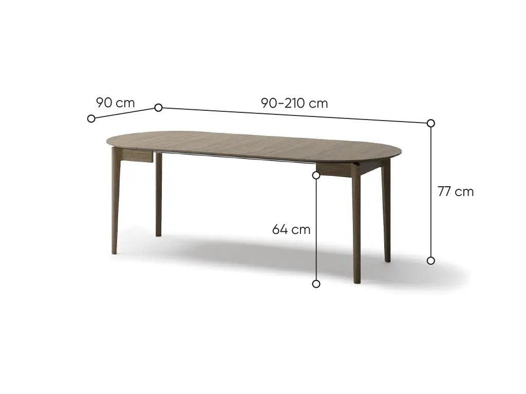 Každá přídavná deska má šířku 40 cm, takže si zákazník může zvolit optimální délku podle aktuální potřeby – 130 cm, 170 cm až na 210 cm. Rozkládací stůl je vybaven přídavnou kovovou nohou v černém odstínu o rozměru 200 × 200 mm, která zajišťuje dokonalou stabilitu při plném rozložení. Noha je prakticky uložena pod deskou stolu, zatímco přídavné desky se uchovávají mimo konstrukci.
