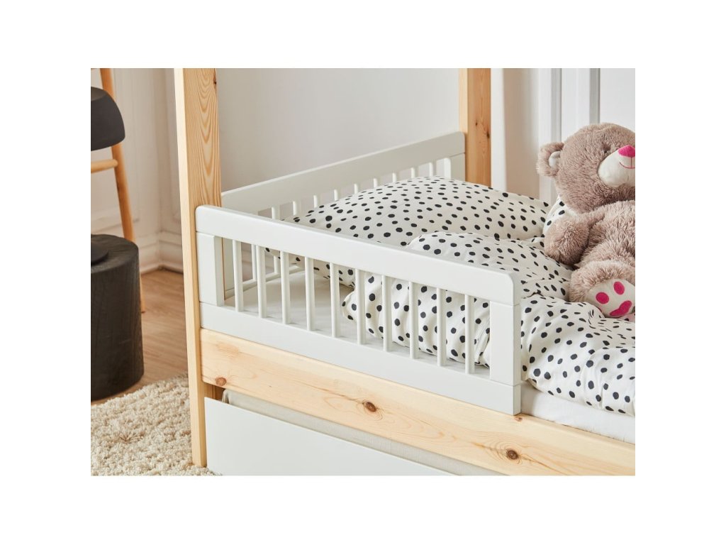Zábrany BASIC s kulatými příčkami poskytují stabilní oporu a zvyšují bezpečí dítěte při přechodu na větší postel. Díky jednoduchému klasickému designu působí lehce a přirozeně doplňují dětskou postel.