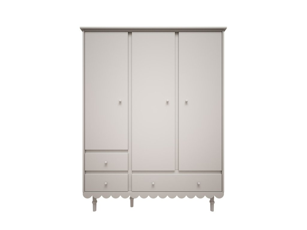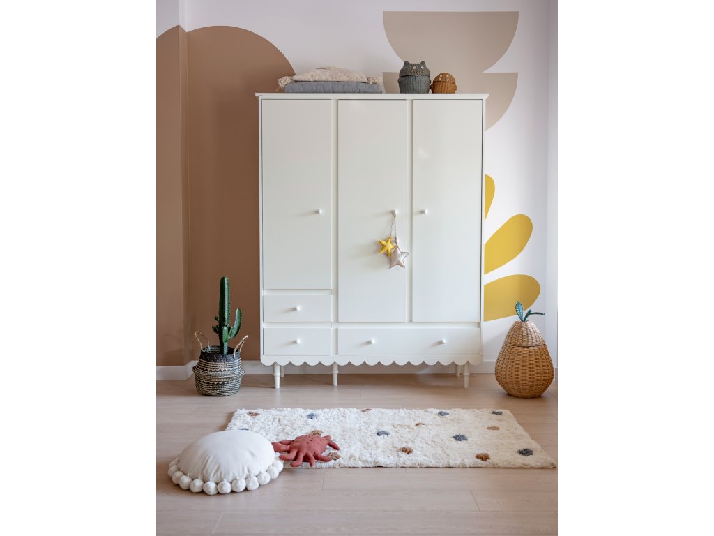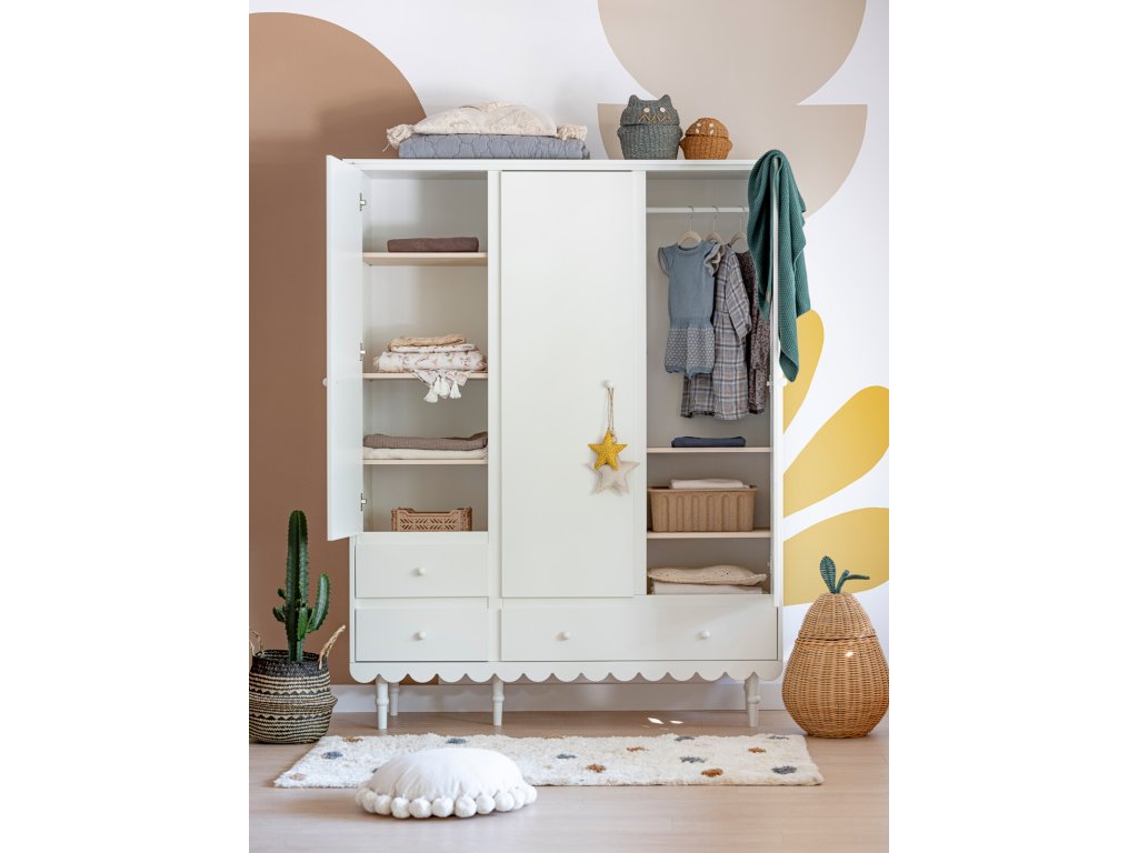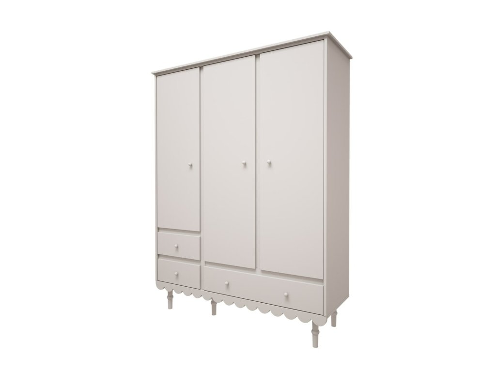 Skříň z kolekce Babushka se pyšní originálními prvky v podobě vyšších nožiček s ozdobným detailem a obloukovým zakončením připomínající krajku. Velmi elegantní a kvalitní kousek, který by neměl chybět v dětském pokoji.