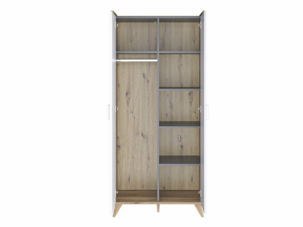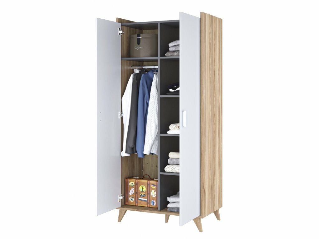 Úložný prostor ve skříni je prakticky rozdělený tak, aby v ní mohlo být uskladněno co nejvíce různých věcí. Do skříně lze odložit hračky, lůžkoviny a další. Nechybí ani šatní tyč k zavěšení oděvů. Šatní skříň se stylově hodí do dětských a studentských pokojů a ložnic. Skříň má, stejně jako ostatní kousky z kolekce, sníženou vrchní desku, kraje jsou tedy zvýšené a tím zabraňují pádu odložených věcí na zem.