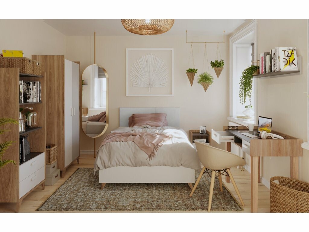 Kolekce Mood se skládá z 12 originálních kousků nábytku. S tímto nábytkem snadno vybavíte studentský pokoj, ložnici, obývací pokoj i domácí pracovnu. Kolekce se skládá ze šatní skříně, různě velkých regálů a komod, psacího stolu, postele, nočního stolku a nechybí ani doplňkové kousky jako je zrcadlo a závěsná police. Jednotlivé prvky k sobě perfektně ladí, jsou kvalitně zpracované a budou dobře sloužit dlouhé roky. Nábytek je v odstínech: dub Castello medový, alpská bílá (mat), světle šedá a tmavě šedá. Atraktivní a moderní design, který se hned tak neokouká.