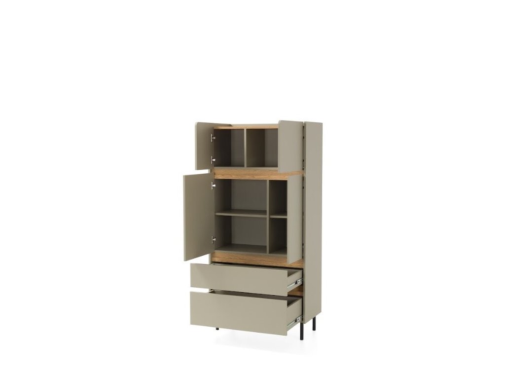 Skříň může stát samostatně v různých pokojích nebo být doplněná o další nábytek ze stejnojmenné kolekce.