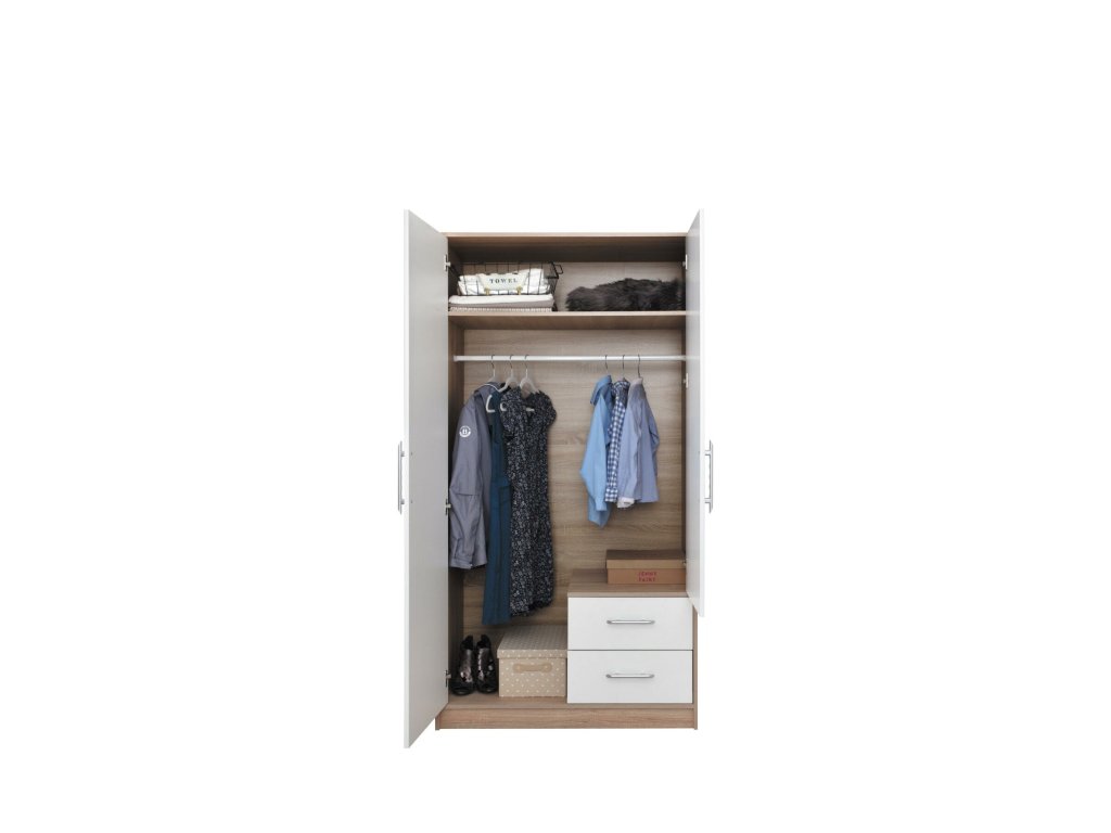 Dvoudveřová šatní skříň má prakticky řešený úložný prostor. Vrchní část tvoří prostorná police, pod kterou se nachází šatní tyč. Na drobnosti a menší kousky oblečení jsou určené dvě oddělené zásuvky. Rozvržení skříně přispívá ke snadnější organizaci nejen oblečení. Skříň může stát samostatně v různých pokojích nebo společně s dalšími skříněmi z kolekce Smart. Ke skříni lze zakoupit nástavec, jež poskytne další uzavřenou polici pro ještě více místa.