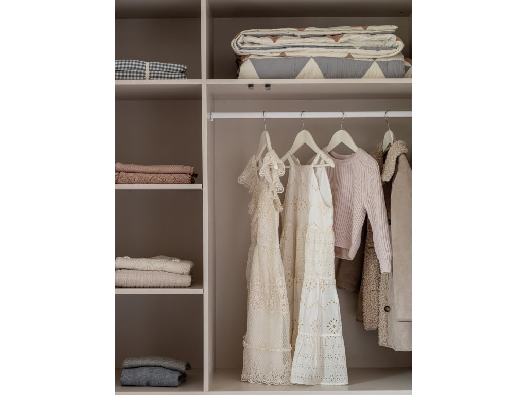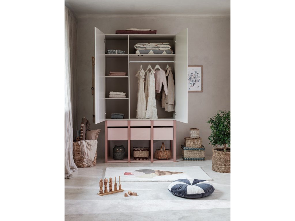 Dětská šatní skříň Tweens v pudrově růžové, korálově růžové, světle růžové a béžové barvě je ideálním řešením pro každý dětský pokoj. Nabízí velkorysé úložné prostory, které se přizpůsobí věku dítěte, a díky svému elegantnímu barevnému provedení působí jemně a nadčasově. Hodí se nejen do dětského pokoje, ale také do studentského interiéru.