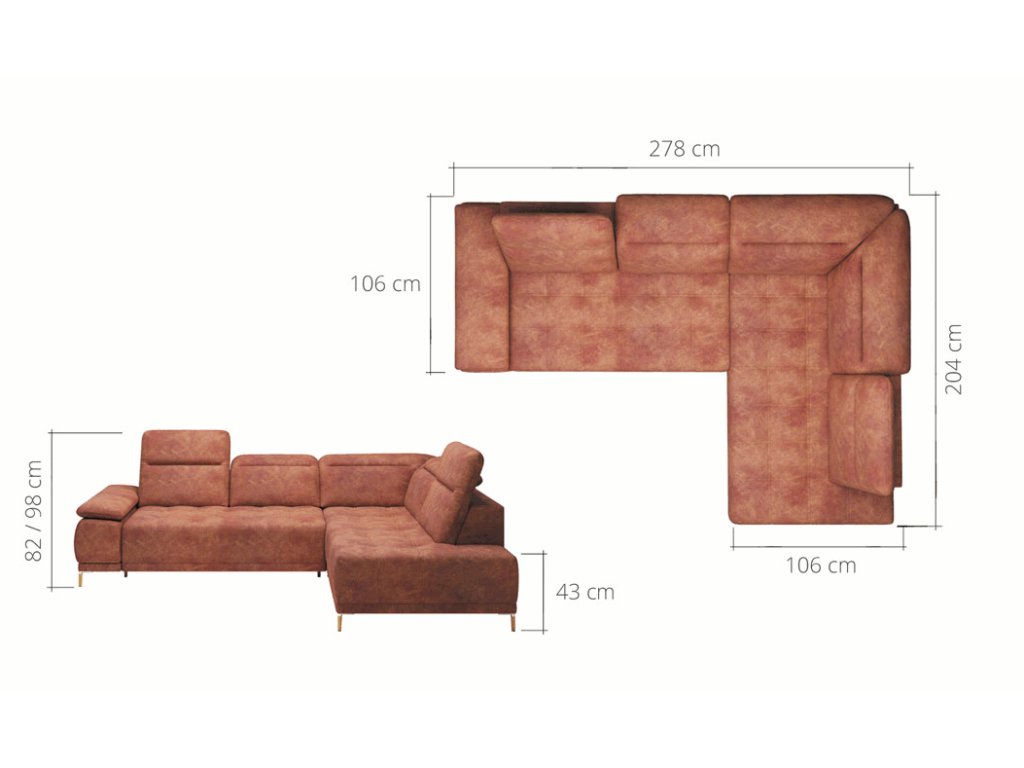 • Polohovací záhlavníky: 3 kusy, nastavitelné od výšky 82 cm až na 98 cm.