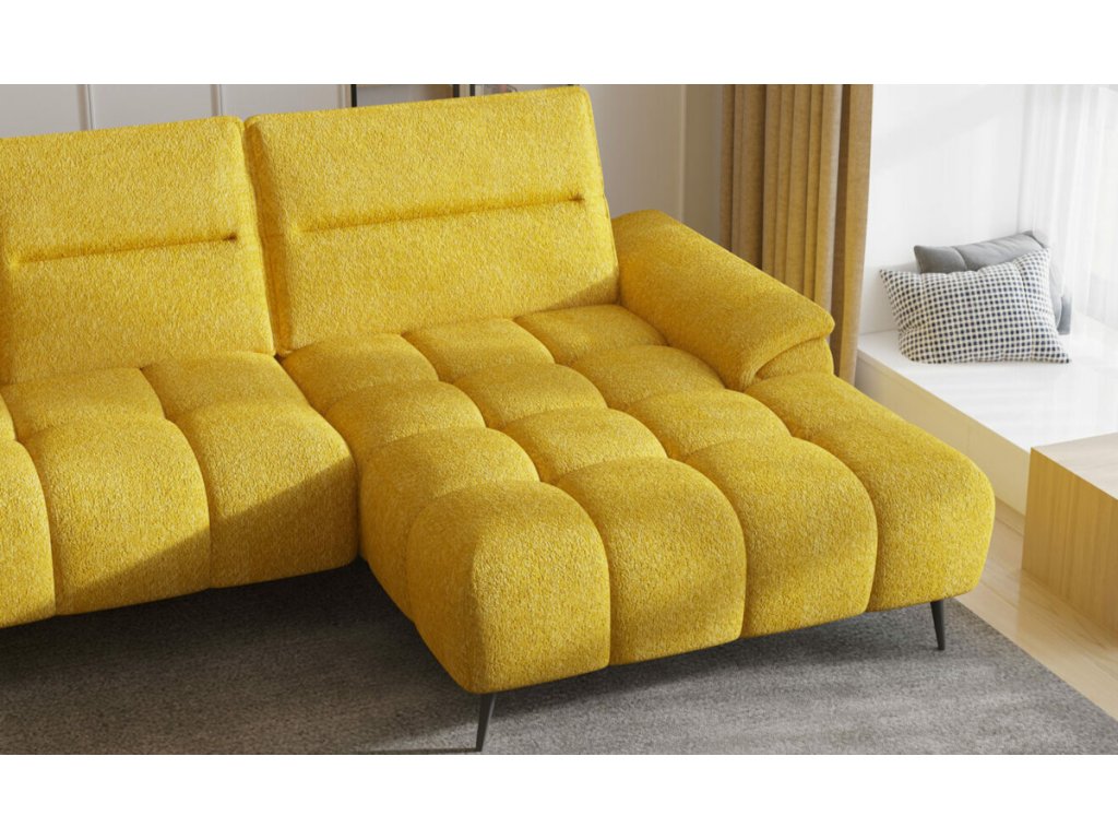 Sedací souprava Montana XL nabízí elektrický výsuv sedu ve střední části, který umožňuje prodloužit hloubku sezení z 62 cm až na 88 cm.