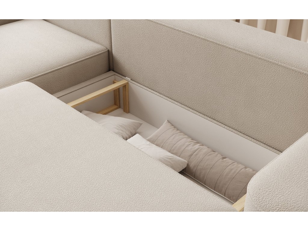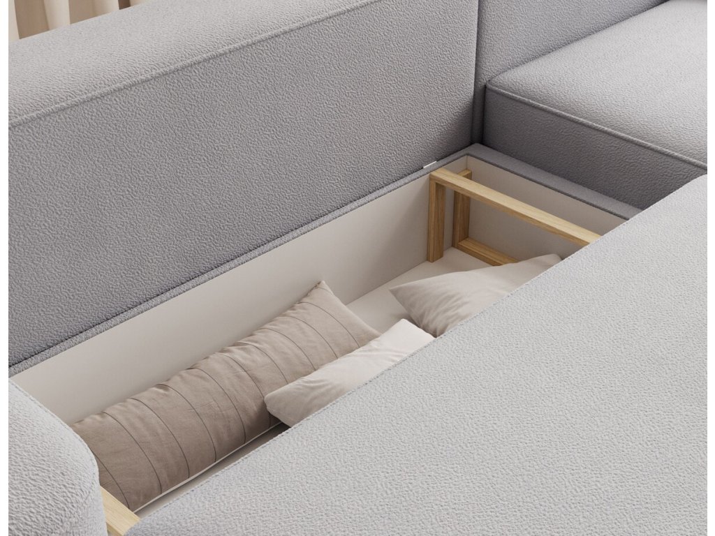 Sedací souprava Aurum je vybavena rozkládací funkcí, díky které ji snadno přeměníte na pohodlné lůžko o velikosti 135 × 231 cm. To oceníte nejen při návštěvách, ale i při příležitostném přespání. Součástí je také velký úložný prostor (120 × 62 × 18 cm), kam uložíte lůžkoviny, deky či další nezbytnosti. Praktické řešení, které vám pomůže udržet pořádek v obývacím pokoji.