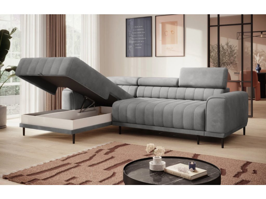 Tři polohovatelné záhlavníky umožňují nastavení výšky od 79 do 99 cm, což zajišťuje příjemnou oporu krční páteře i komfortní odpočinek při sledování televize nebo čtení.