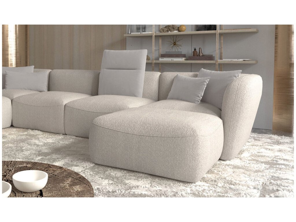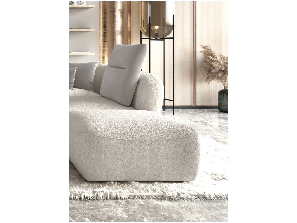 Rohová sedací souprava Candelo XL 70 o šířce 373 cm zaujme svými jemnými oblými liniemi a nadčasovým designem. Delší otoman s opěrkami má hloubku 218 cm, kratší část s područkou 172 cm. Měkké, plynulé tvary područek, opěráků i sedáků dodávají sedačce přirozenou eleganci a příjemnou atmosféru.